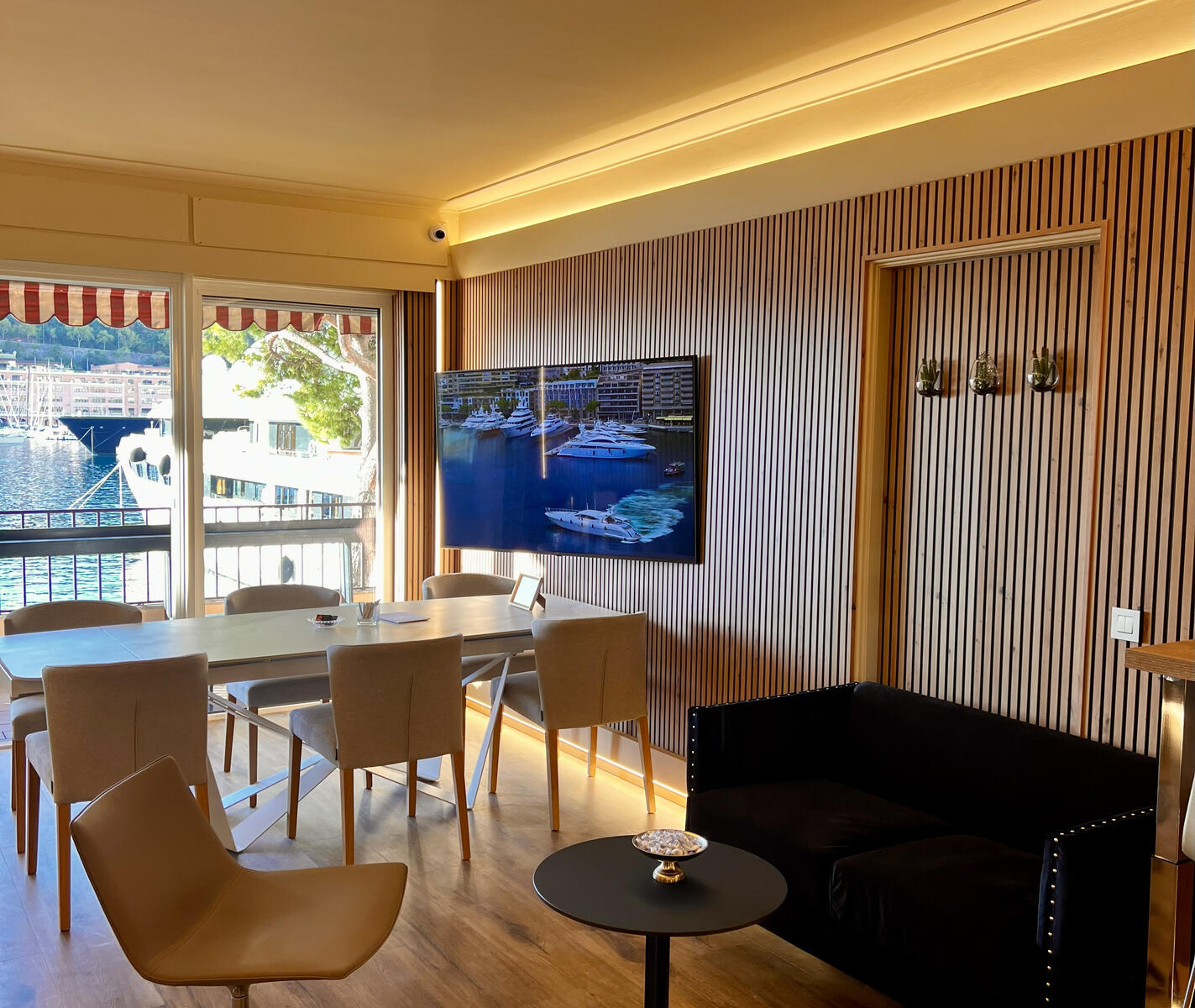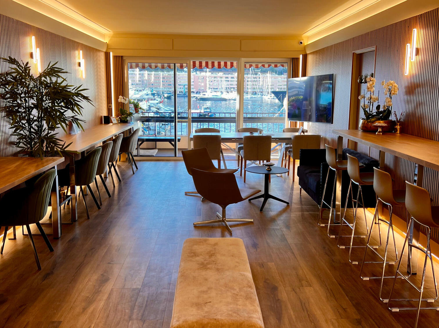 This shared workspace is located in the port of Monaco close to the Yacht Club
