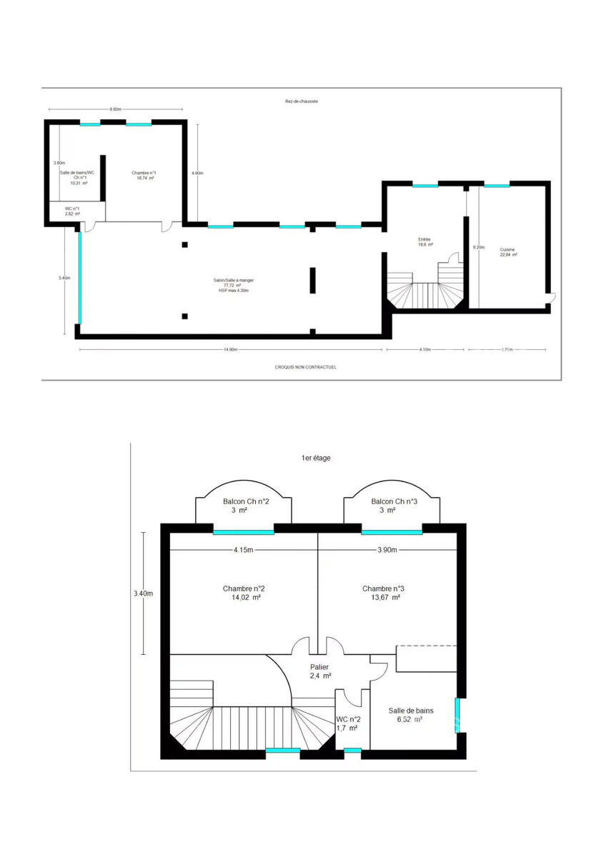 - Two large bedrooms upstairs with balcony and stunning sea views