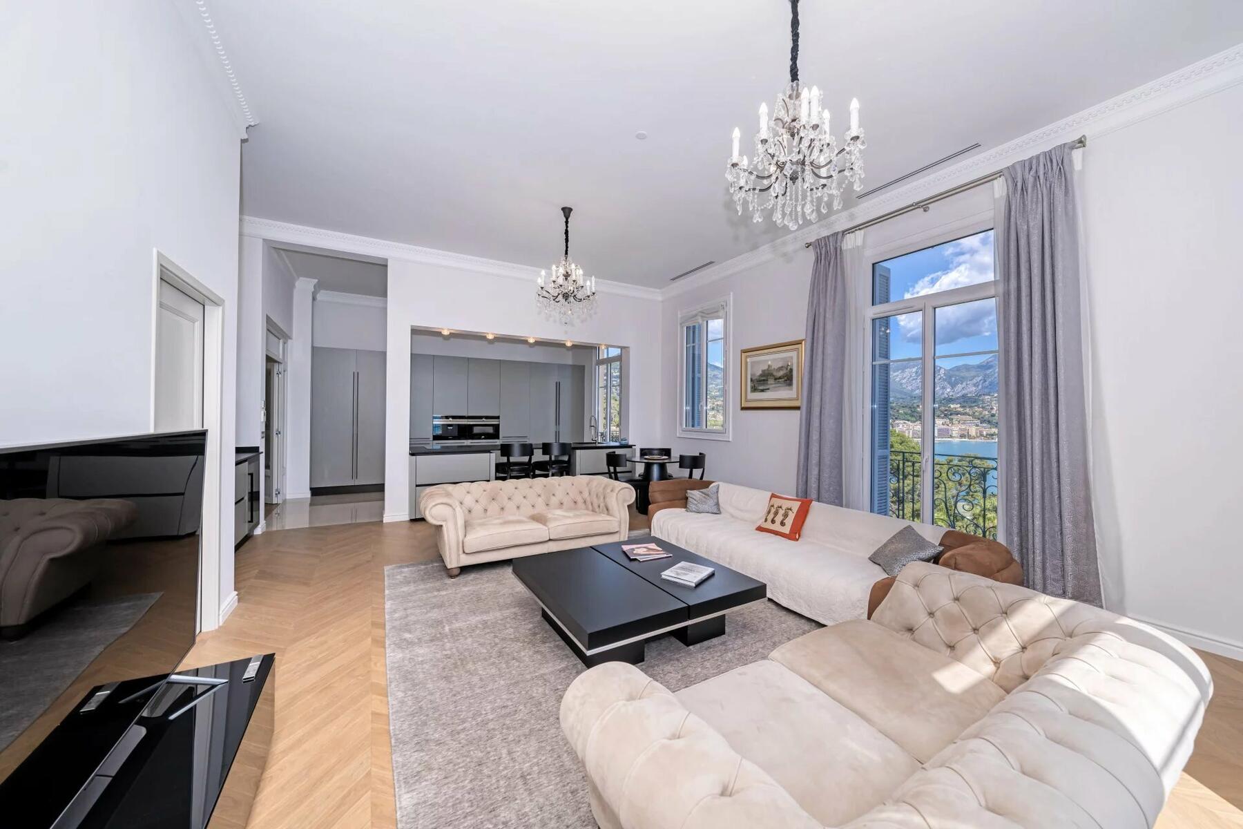 Located in Roquebrune Cap Martin, on the top floor of a Belle Époque building, sublime 4-room apartment with a breathtaking view of the sea.