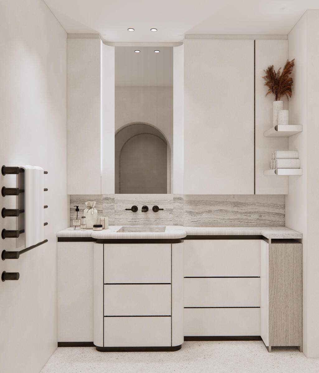 Composed of an entrance, nice living room with open kitchen with central counter, two bedrooms with en-suite bathroom and cupboards, guest toilet, balconies.