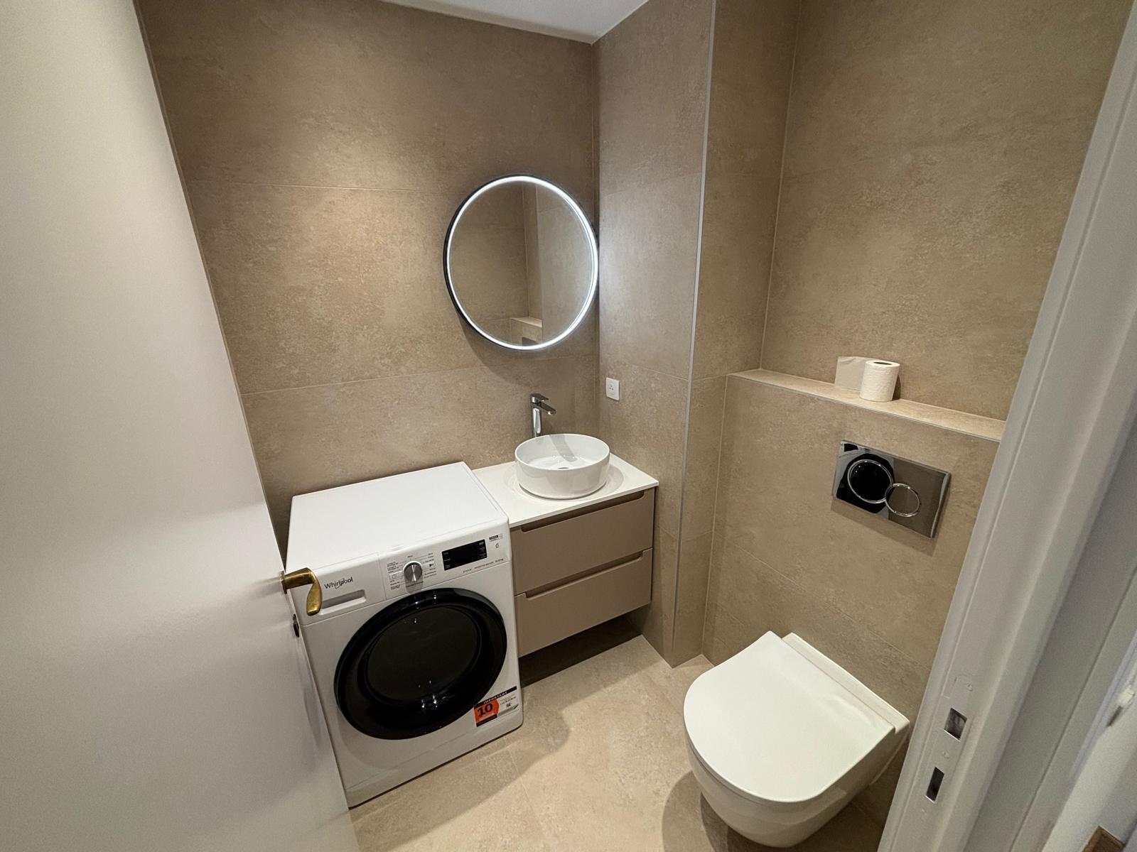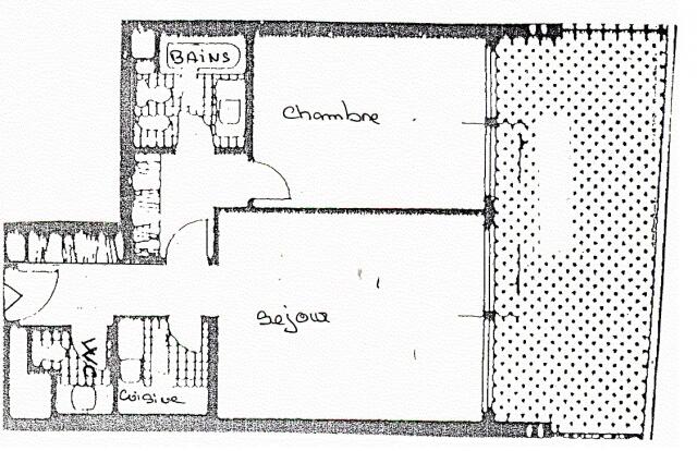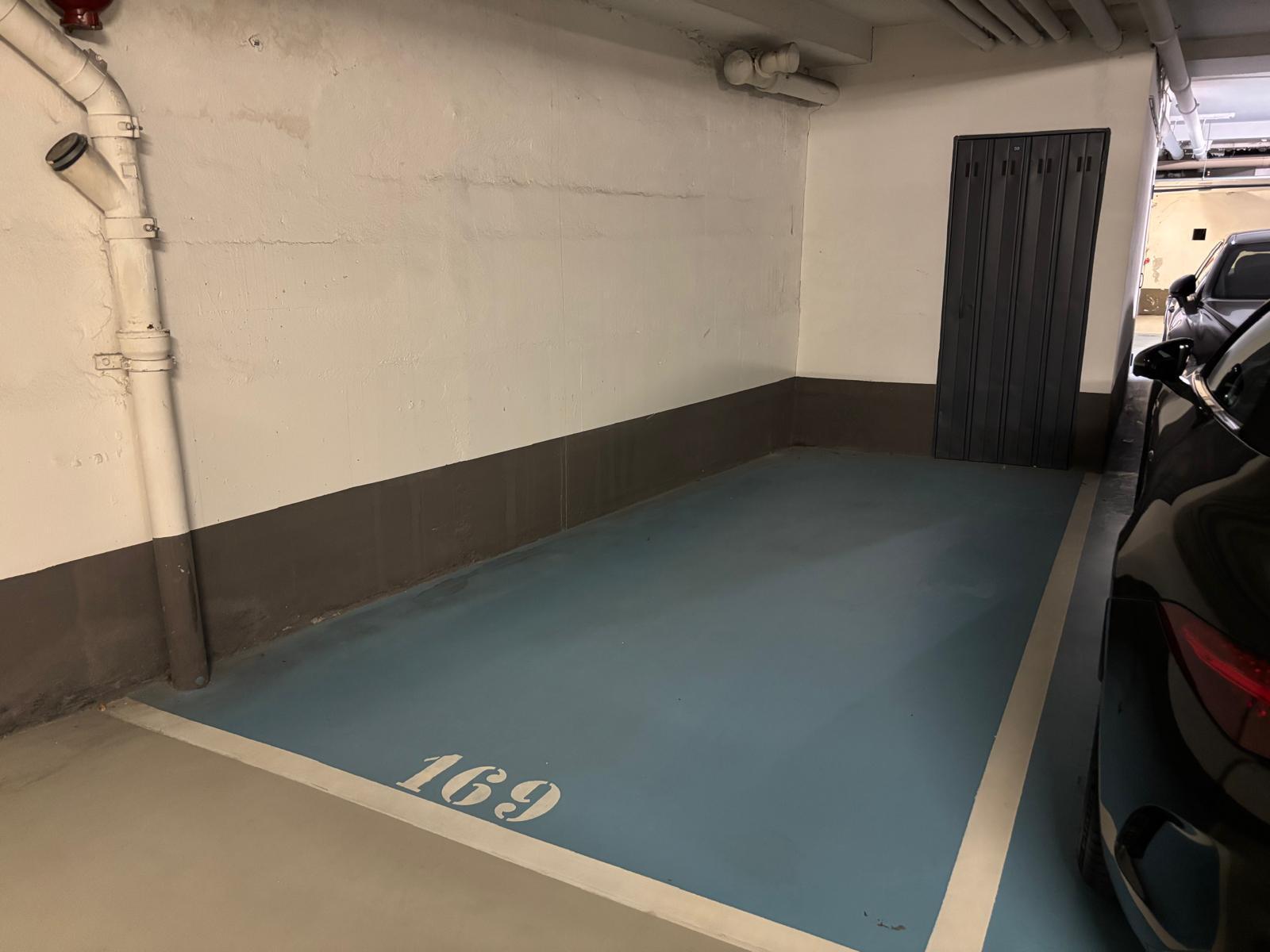 This apartment comprises an entrance hall with a built-in wardrobe, a guest toilet, a fully equipped kitchen, a living room, a bedroom, and a bathroom with a toilet. A real cellar and a parking space complete this property.