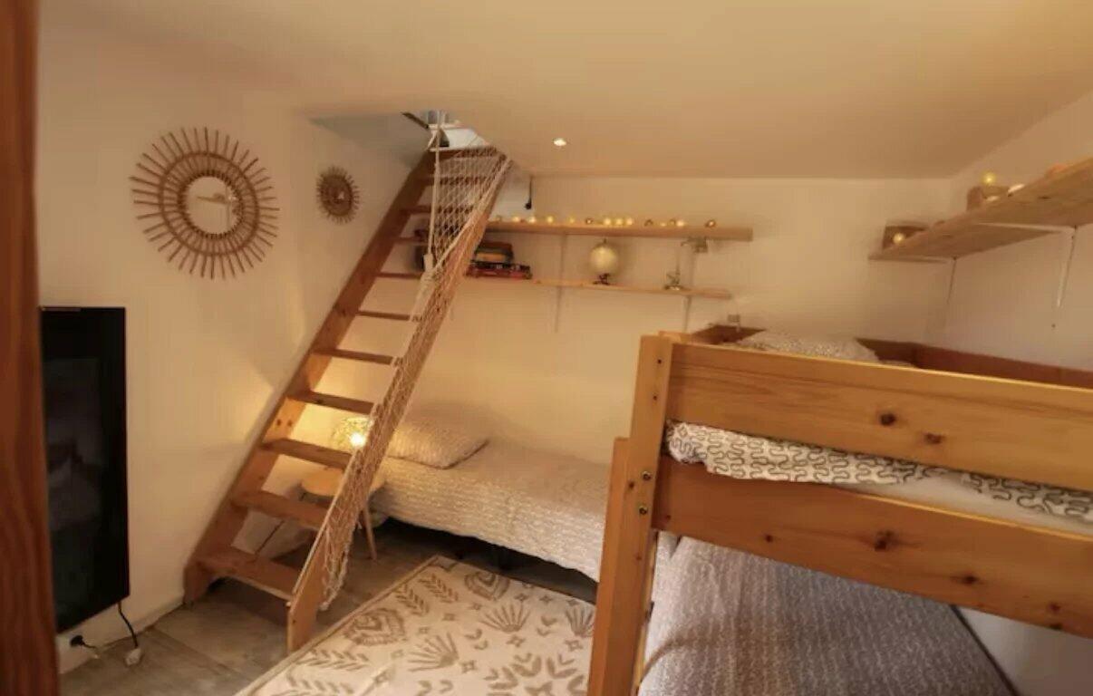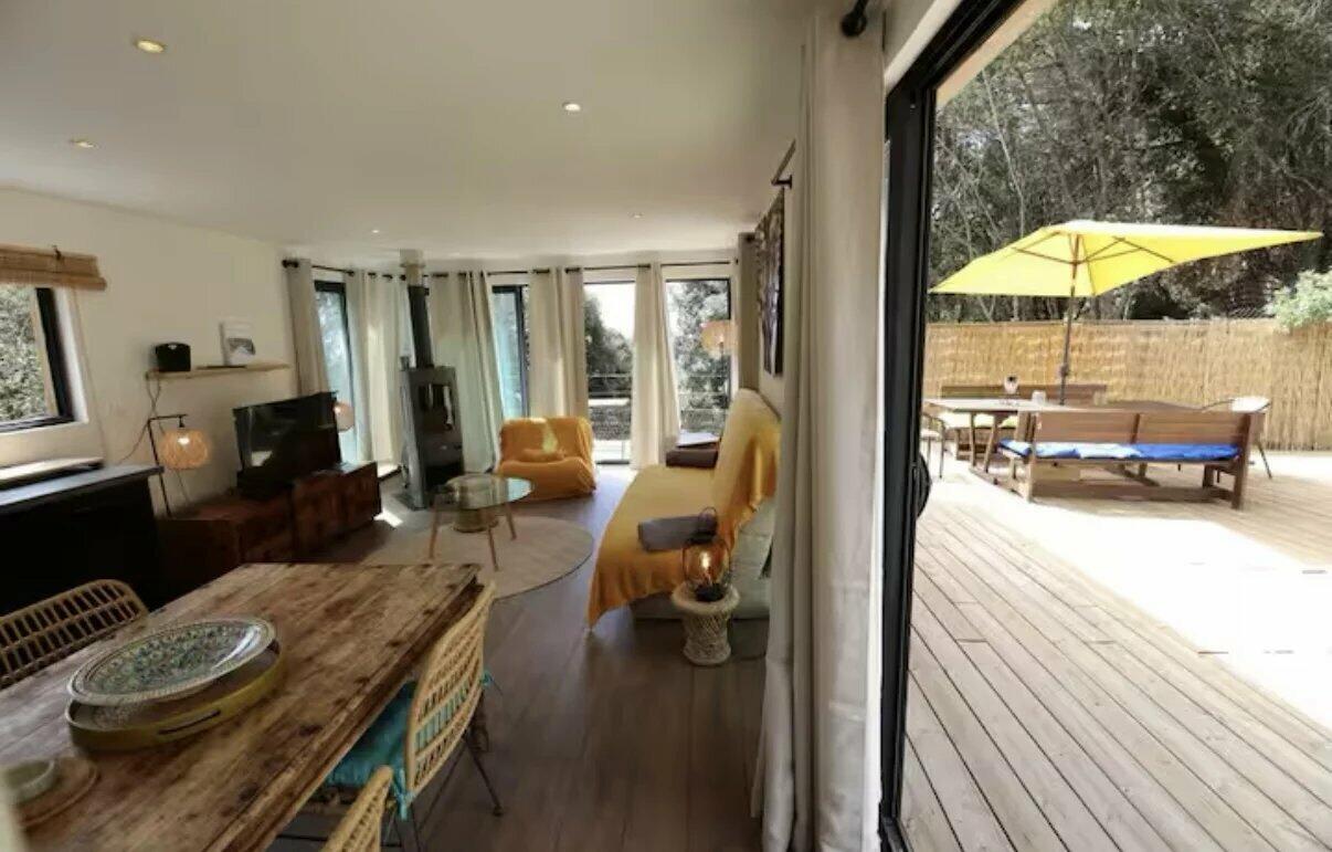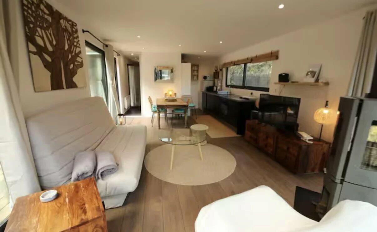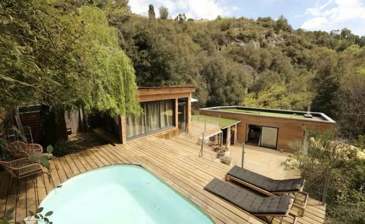 Close to the prestigious Château de la Chèvre d'Or, this house has an area of 75 m2 and is composed of a large bright living room, 2 communicating bedrooms, a bathroom, and a veranda.