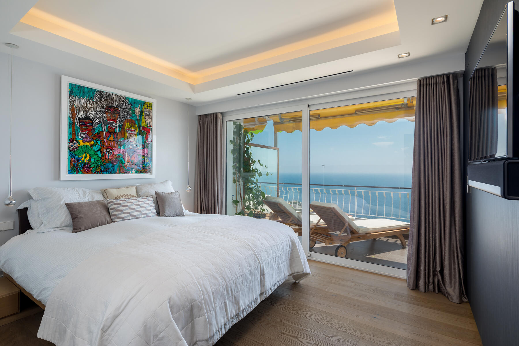 - A master area with a large dressing room and study, a bedroom and a bathroom / shower both with sea view, a