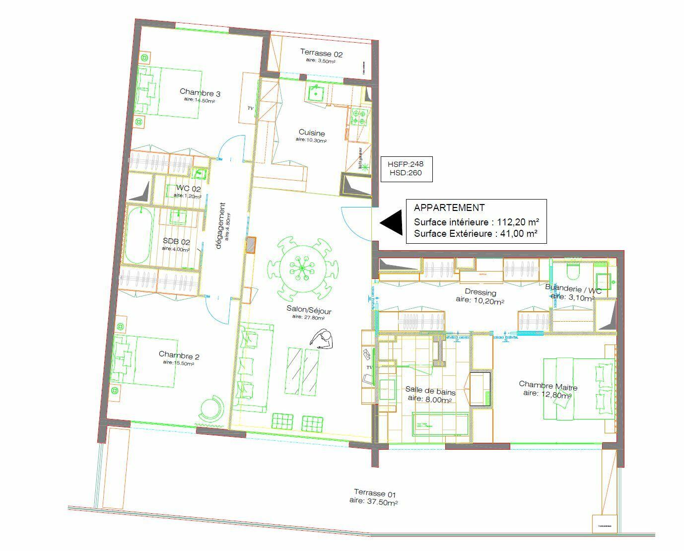 Magnificent top floor 4-room apartment of 112.5 sqm of living space + 34.5 sqm of terraces, just a few minutes' walk