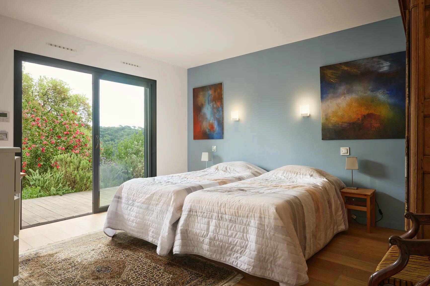 Built in 2014 by a renowned architect, the property offers 340 sqm of living space in perfect harmony with its natural 7,000 sqm plot. The generous yet intimate volumes have been designed to combine modernity, ecology, comfort, and authenticity. In absolute tranquility, with no overlooking neighbors, a heated 14 x 4 m saltwater infinity pool and its fully equipped pool house create a relaxing and refreshing haven of peace.