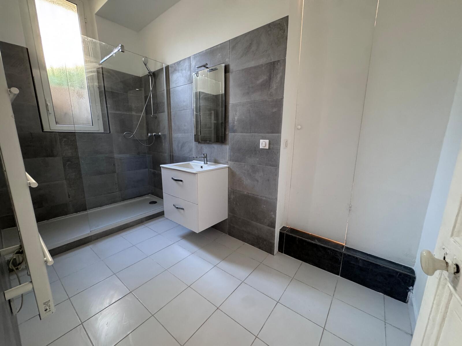 - Modern bathroom with walk-in shower