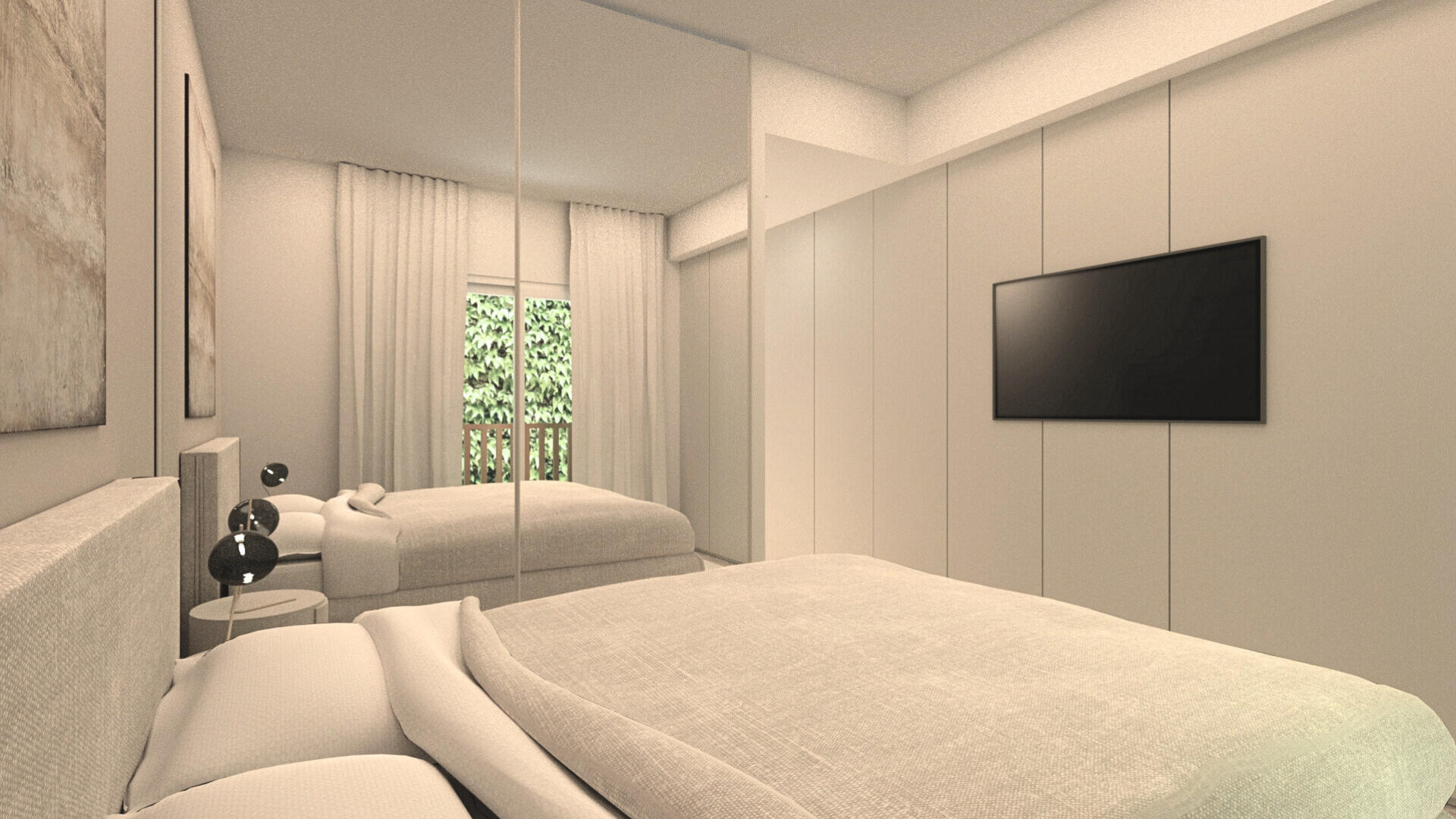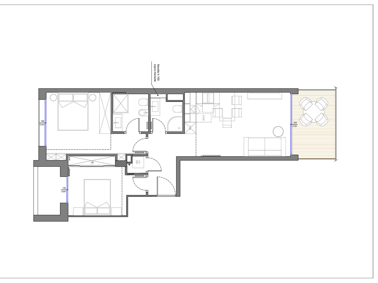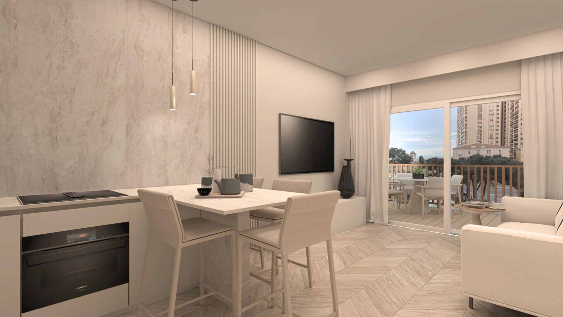 This flat, currently undergoing complete restructuring and renovation, will be sold ready to move into. It is located near the new seaside district of Mareterra, the Larvotto beach and Place des Moulins, accessible by public lift. The flat will comprise an entrance hall, a living room with fitted kitchen opening onto the dining area, all opening onto a pleasant terrace, a master bedroom with storage space and en-suite shower room, a second bedroom with wardrobe and access to the balcony, and a shower room.