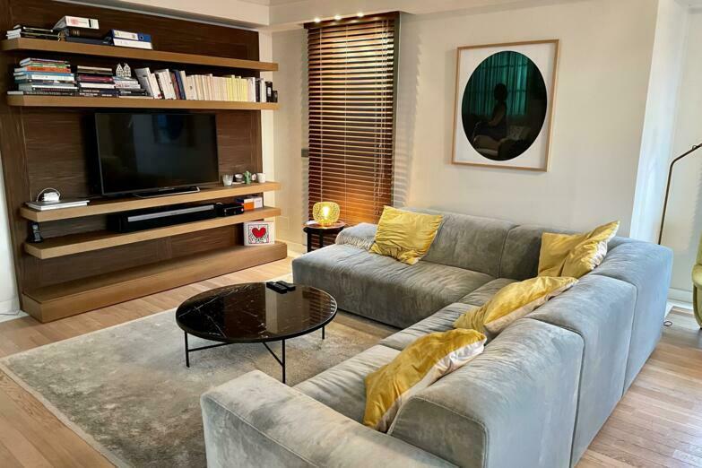 The apartment consists of a very bright living room, a large open kitchen, two bedrooms, one of which has a dressing room, bathroom and a guest toilet.