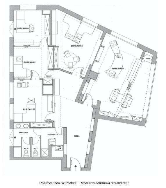 These luxury premises, tastefully arranged and decorated, can be sold with the furniture : desks, chairs, tables, cupboards, kitchenette.
