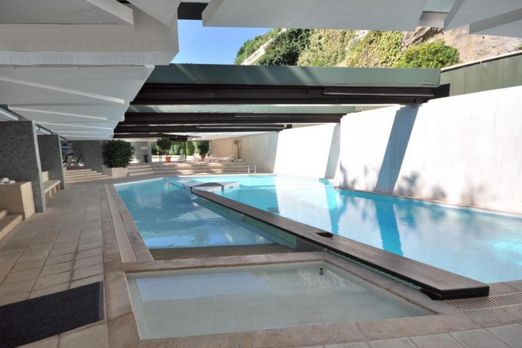 Spacious 2-room apartment close to the Casino in a luxury building with swimming pool and 24-hour concierge. Sold with cellar and parking