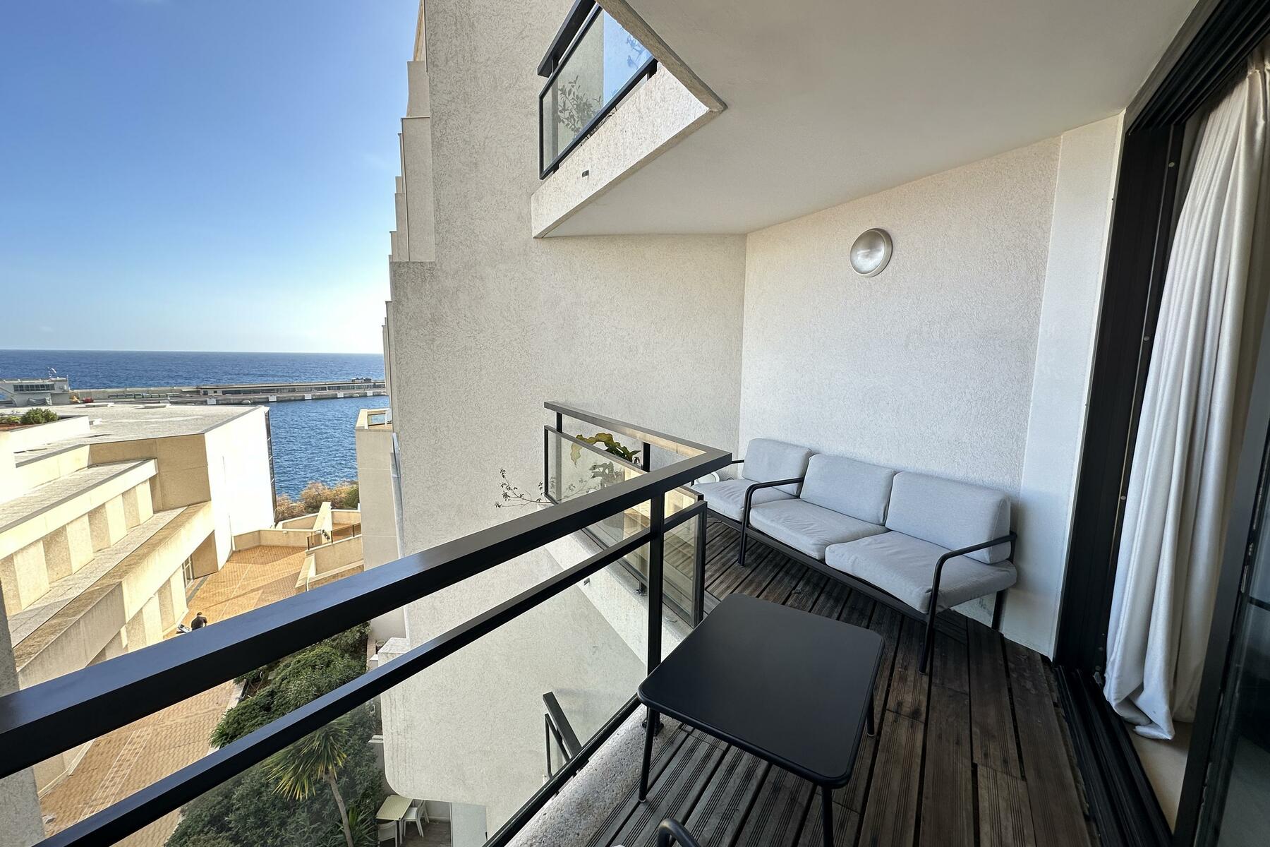 Located on the 5th floor, this unique 1 bedrrom flat has been renovated with quality materials and enjoys views of the sea and the Casino.