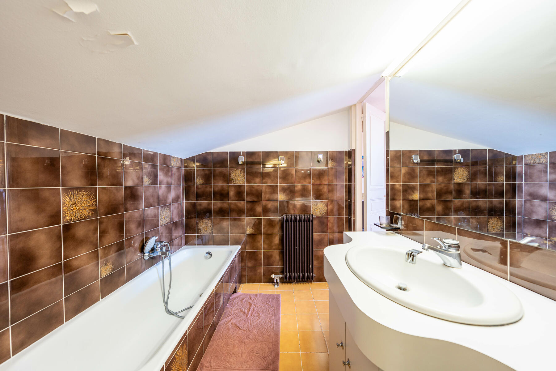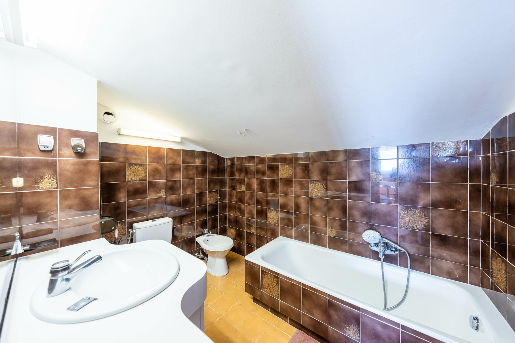 As soon as you enter, a spacious hall welcomes visitors and can be converted into an additional sleeping area thanks to an integrated sofa bed.