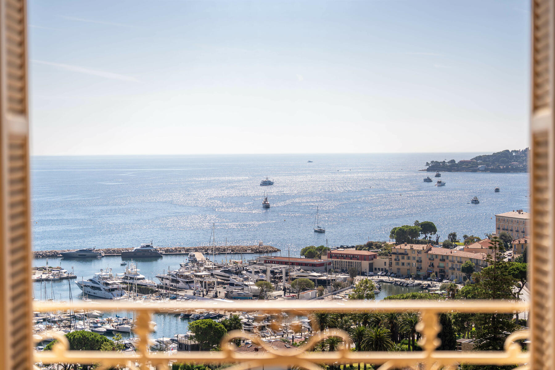 The vast living room, bathed in light, opens onto a balcony overlooking the Mediterranean, offering a unique spectacle from Saint-Jean-Cap-Ferrat to Cap d'Ail. The independent kitchen, perfectly arranged, completes the living space.