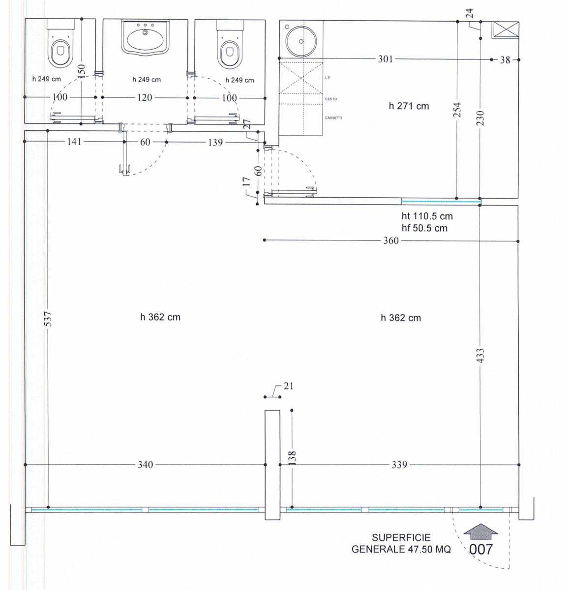 Office in excellent condition, with direct access and a large shop window ensuring maximum visibility. Featuring high ceilings, it includes a main area, a meeting room, and two W.C. The property is currently rented for €4,500 excl. VAT per month.