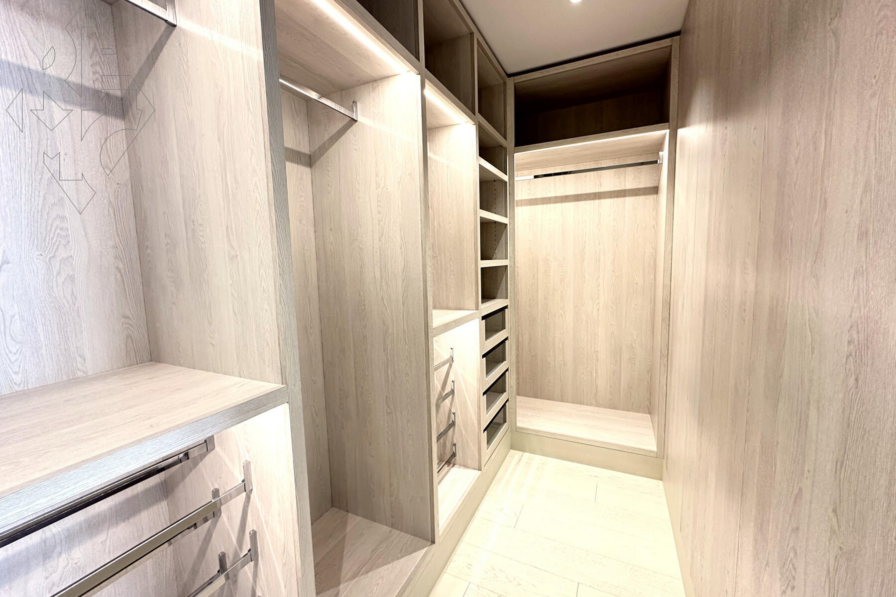 A master suite opening onto a balcony, with a custom walk-in closet and en-suite bathroom, offering hotel-level comfort,