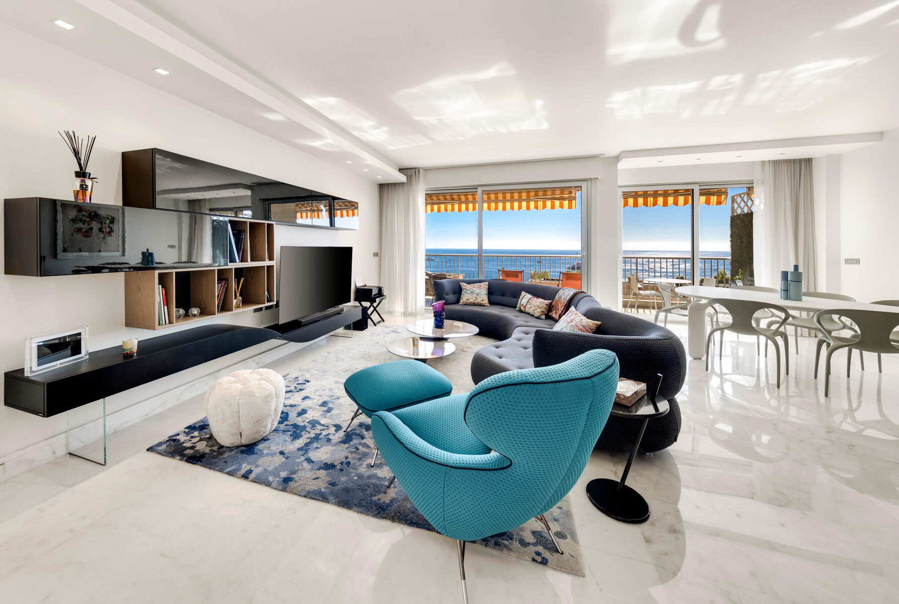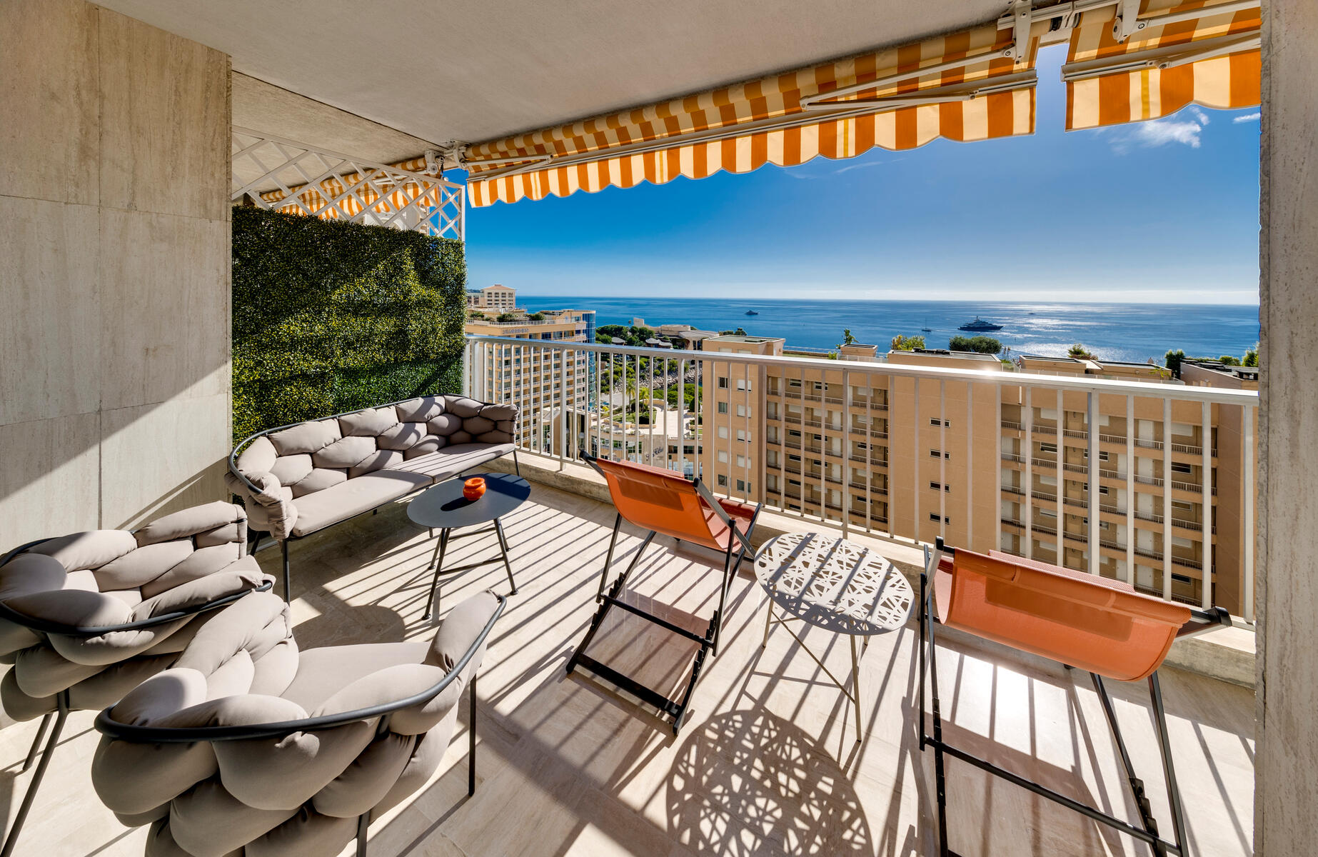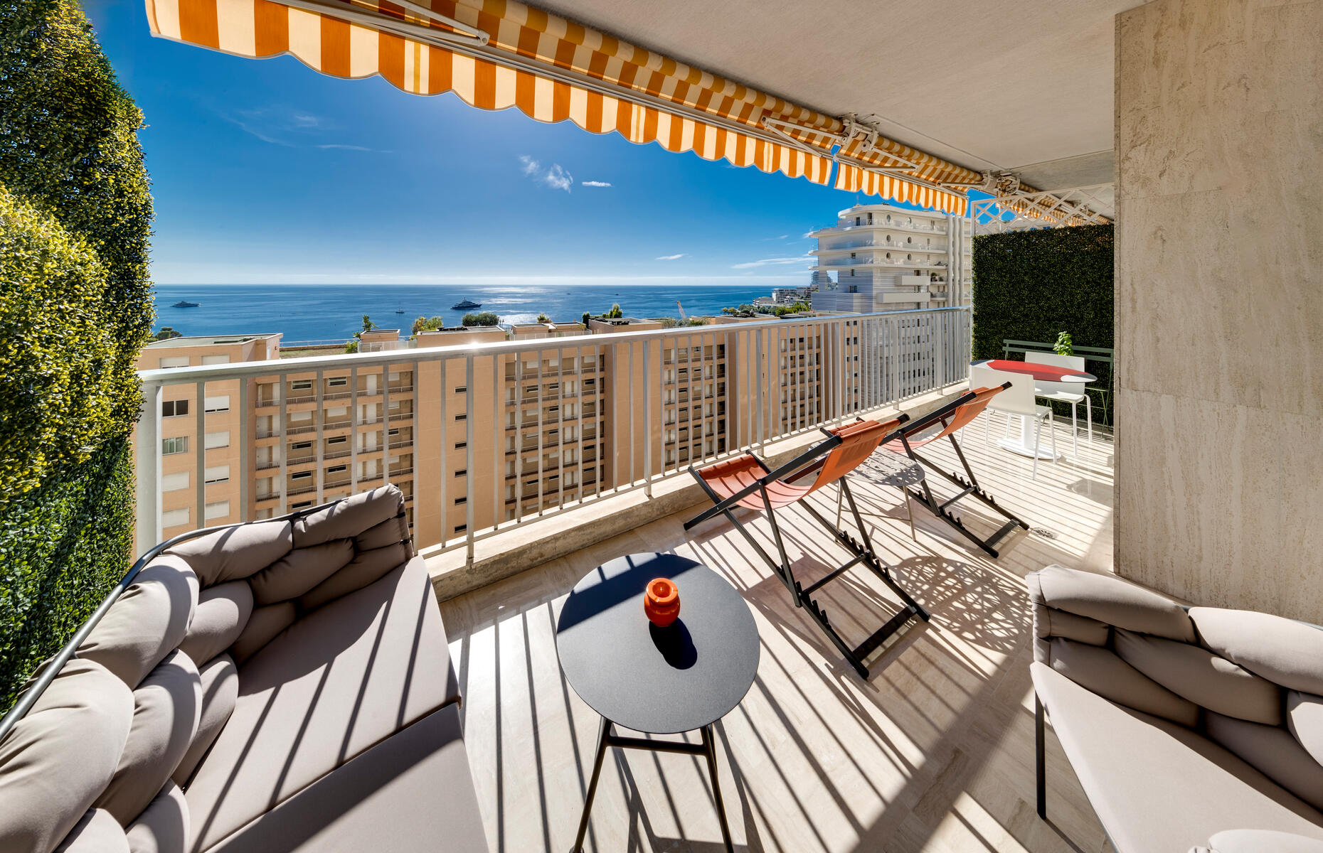 Located in Le Château d’Azur, just a few steps from the Larvotto beaches and the center of Monte-Carlo, this elegant three-room apartment, in perfect condition and measuring approximately 130 sqm, offers an ideal living environment combining comfort, brightness, and panoramic sea views.