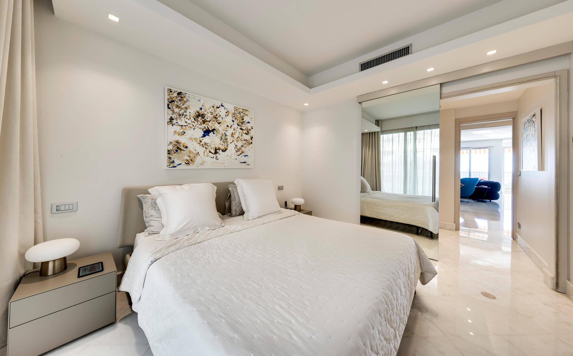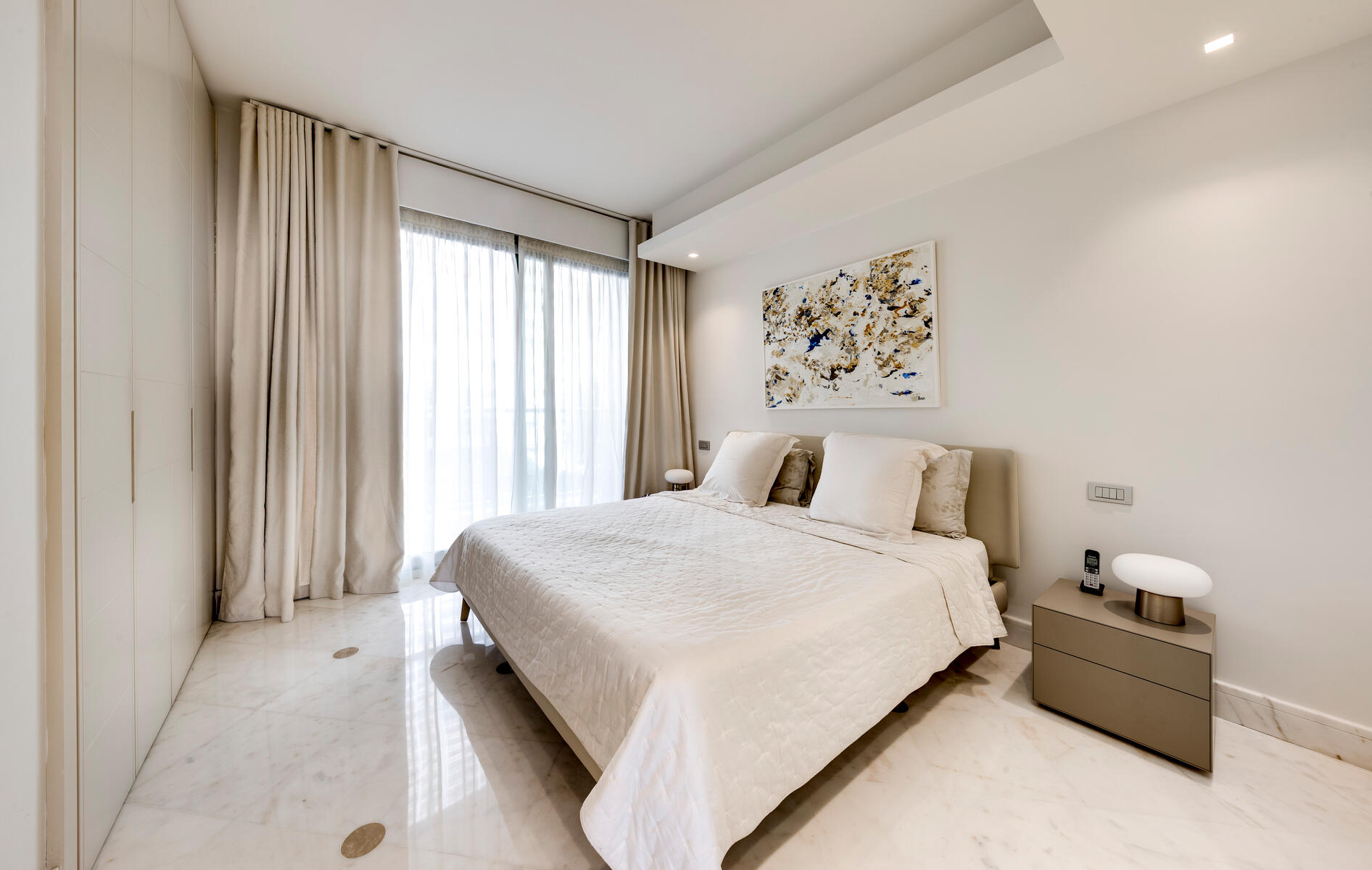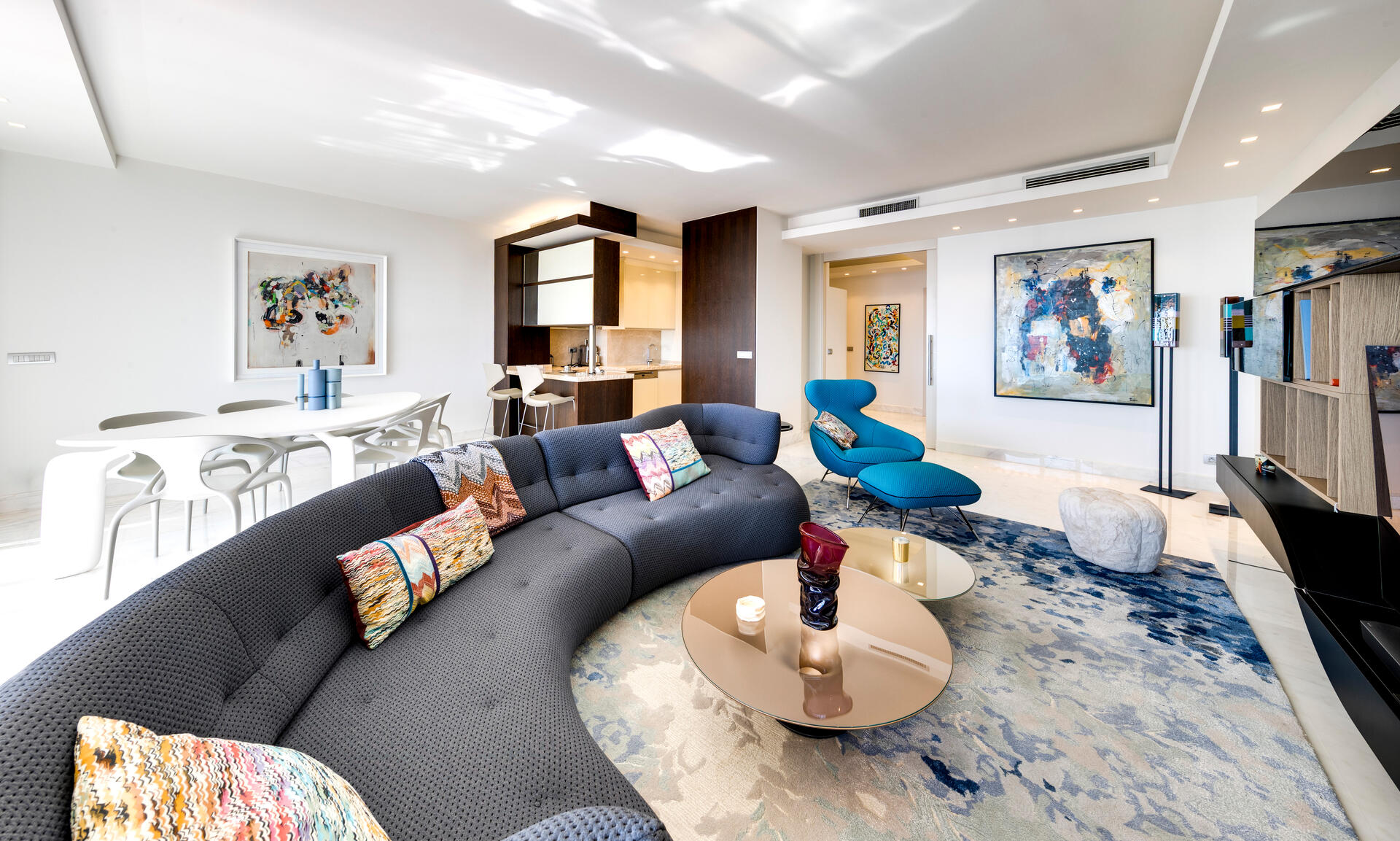 Located in Le Château d’Azur, just a few steps from the Larvotto beaches and the center of Monte-Carlo, this elegant three-room apartment, in perfect condition and measuring approximately 130 sqm, offers an ideal living environment combining comfort, brightness, and panoramic sea views.