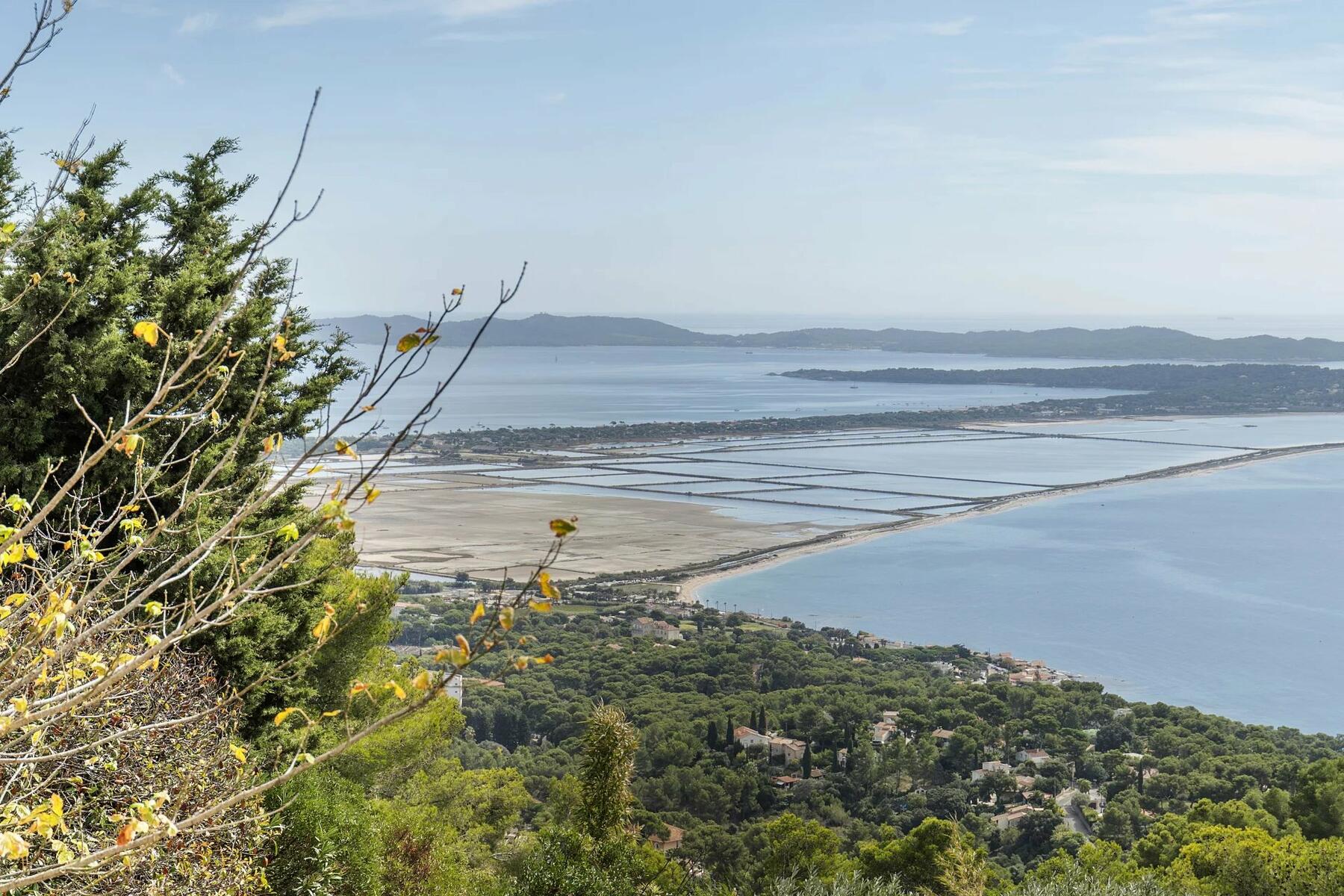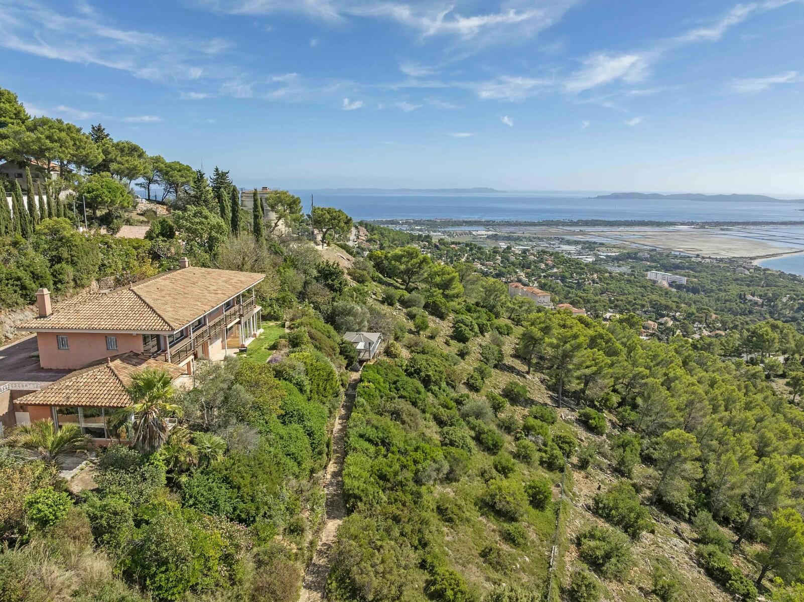 With approximately 300 sqm of living space, the property opens onto a breathtaking, ever-changing view of the Mediterranean, the Giens Peninsula, Porquerolles Island, and the port of Carqueiranne, visible from most rooms.