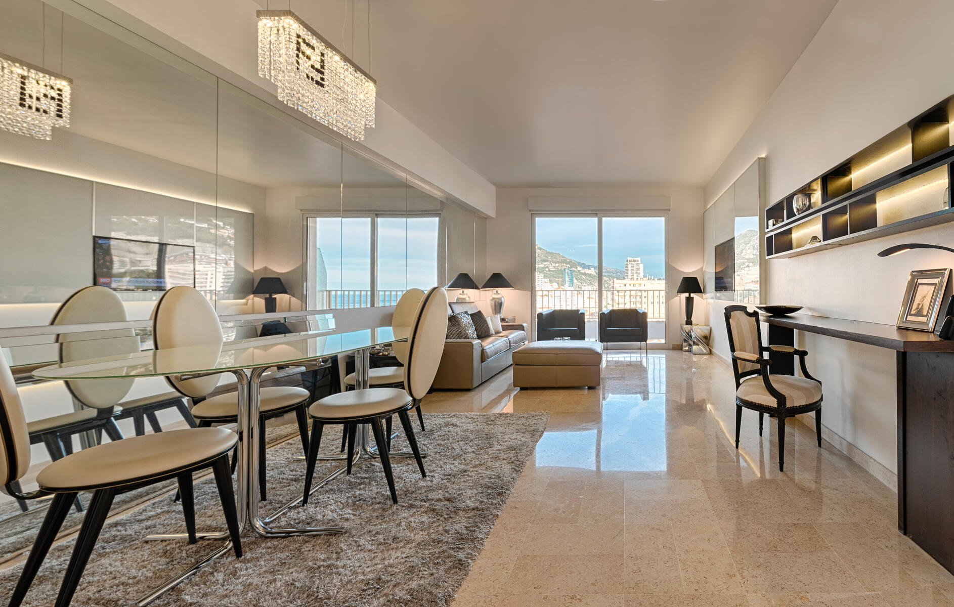 The apartment is located in a quiet street of the Exotic Garden area, in a building overlooking the Principality.