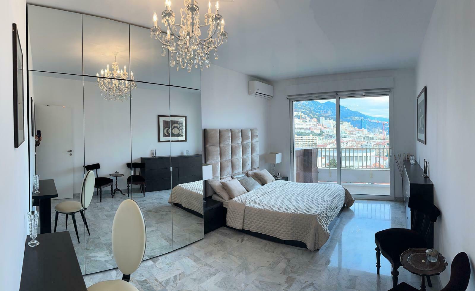 In the Jardin Exotique district, in a residential and quiet area, elegant 3-bedroom family apartment, bright and with sea views