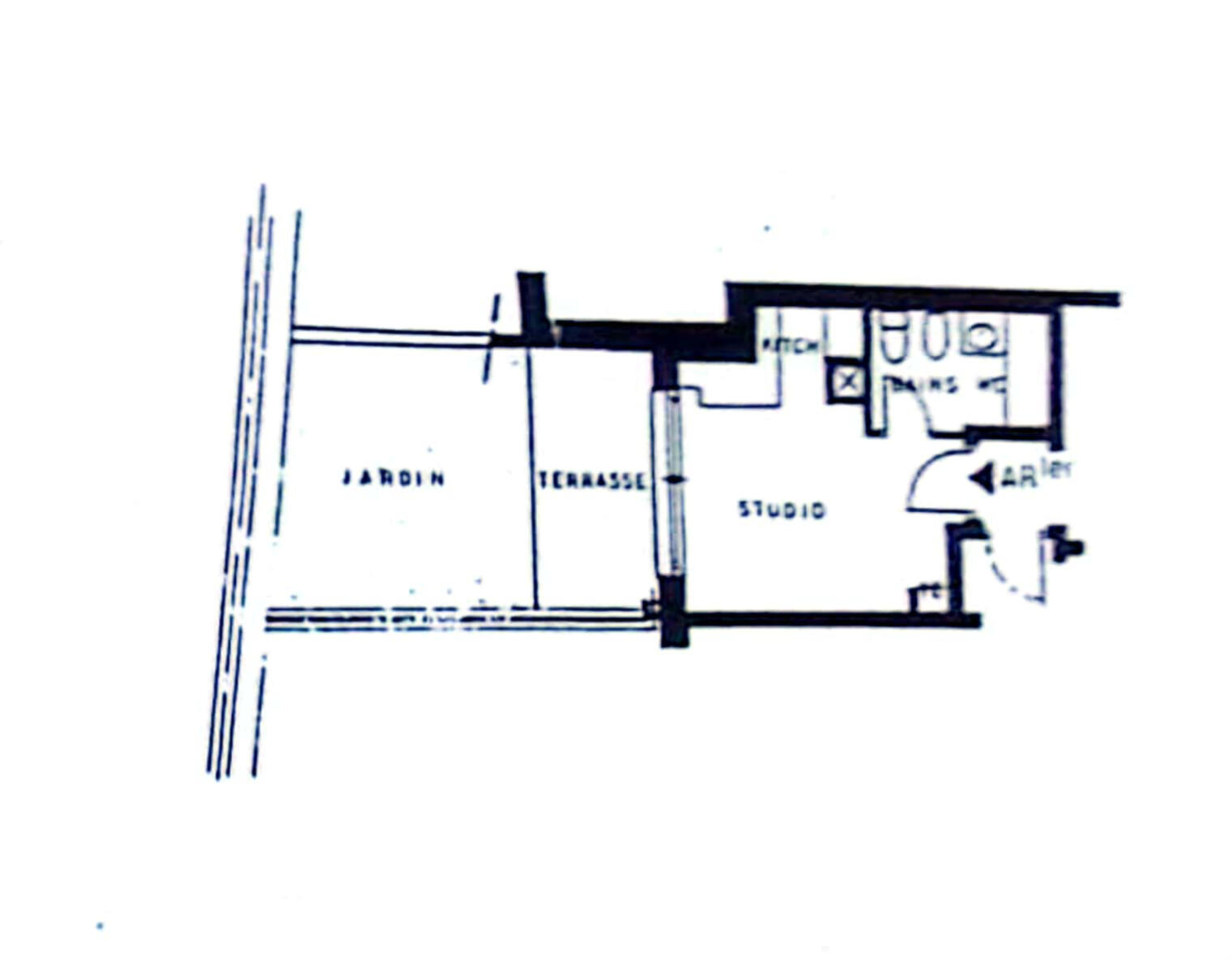 Entrance with double door, living area with kitchenette, spacious bathroom with bathtub / shower, private garden of about 17 square meters.
