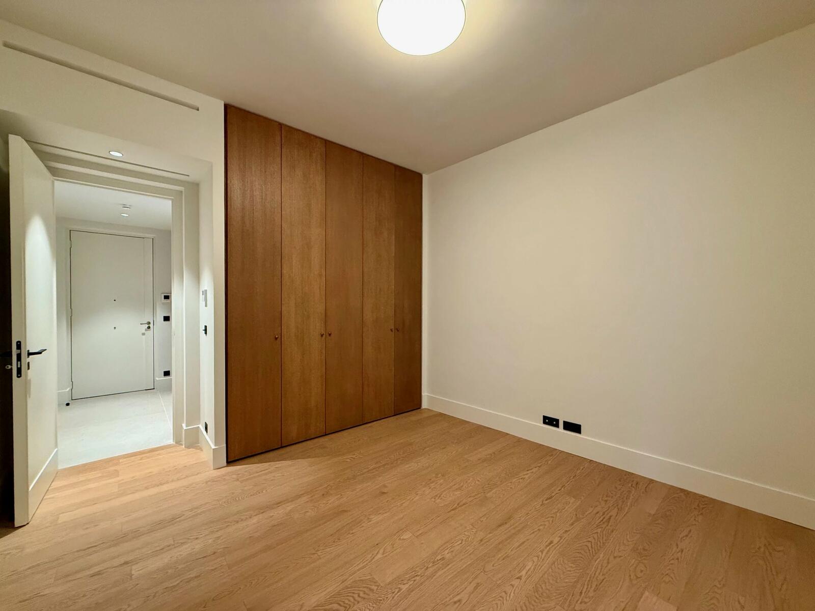 FLOR PALACE II – 4-room apartment comprising an entrance hall, hallway with built-in storage, bright double living room, fully equipped open-plan kitchen, master bedroom with walk-in closet and en-suite shower room with toilet, two additional bedrooms, second shower room with toilet, and guest toilet. Small balcony.