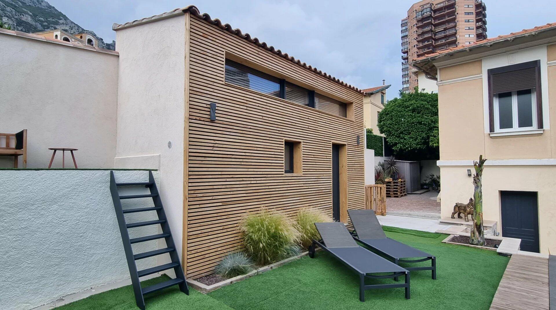 Magnificent 4-room 'niçoise' villa on two levels, plus independent studio, in excellent condition, with direct access by car, offering a view of the town and sea, in a quiet area just 1 minute from Monaco.
