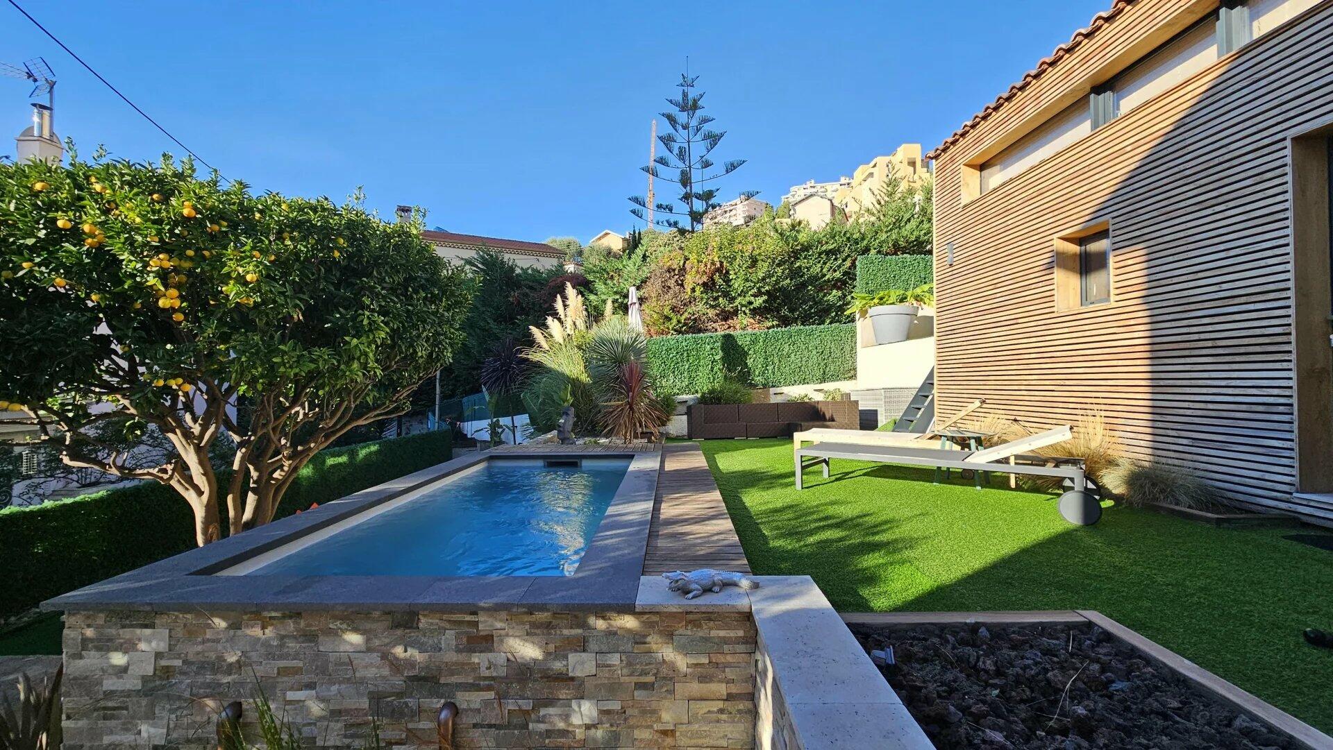 Built on a 370 m² plot with several terraces, including a summer kitchen with barbecue, a garden, a swimming pool and a guest apartment.