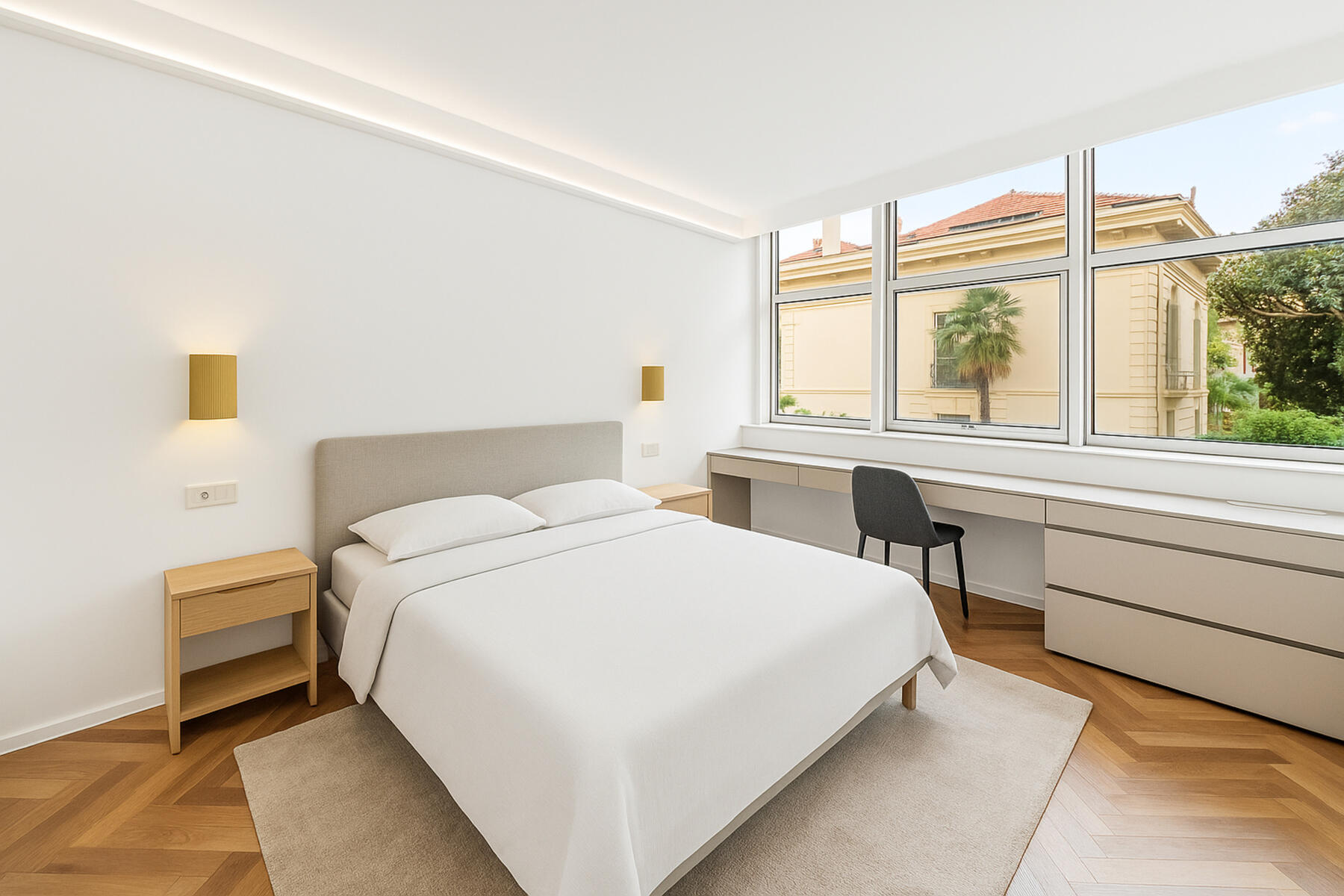 In the heart of the Condamine 2 steps from the Port, in a building with concierge and parking, spacious 3-room apartment completely renovated.
