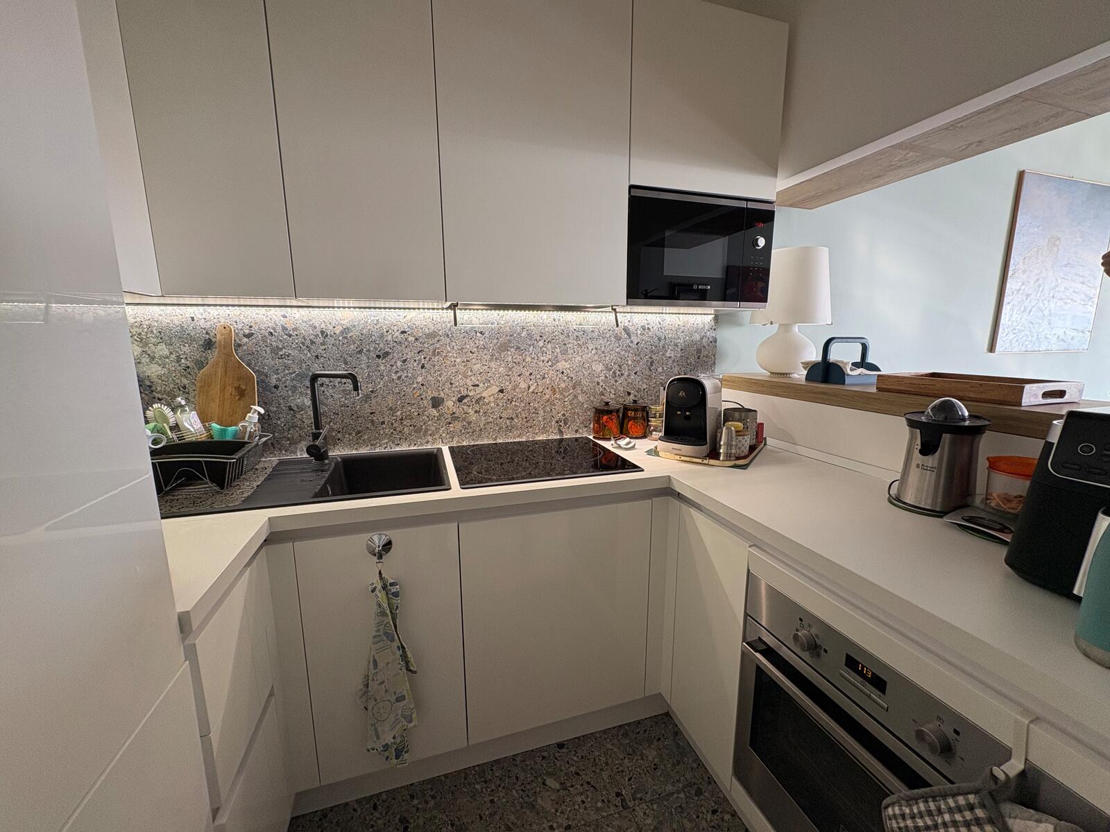 It consists of an entrance hall with storage, a kitchen entirely open to a spacious living/dining room, a comfortable bedroom with plenty of storage space, as well as a bathroom.
