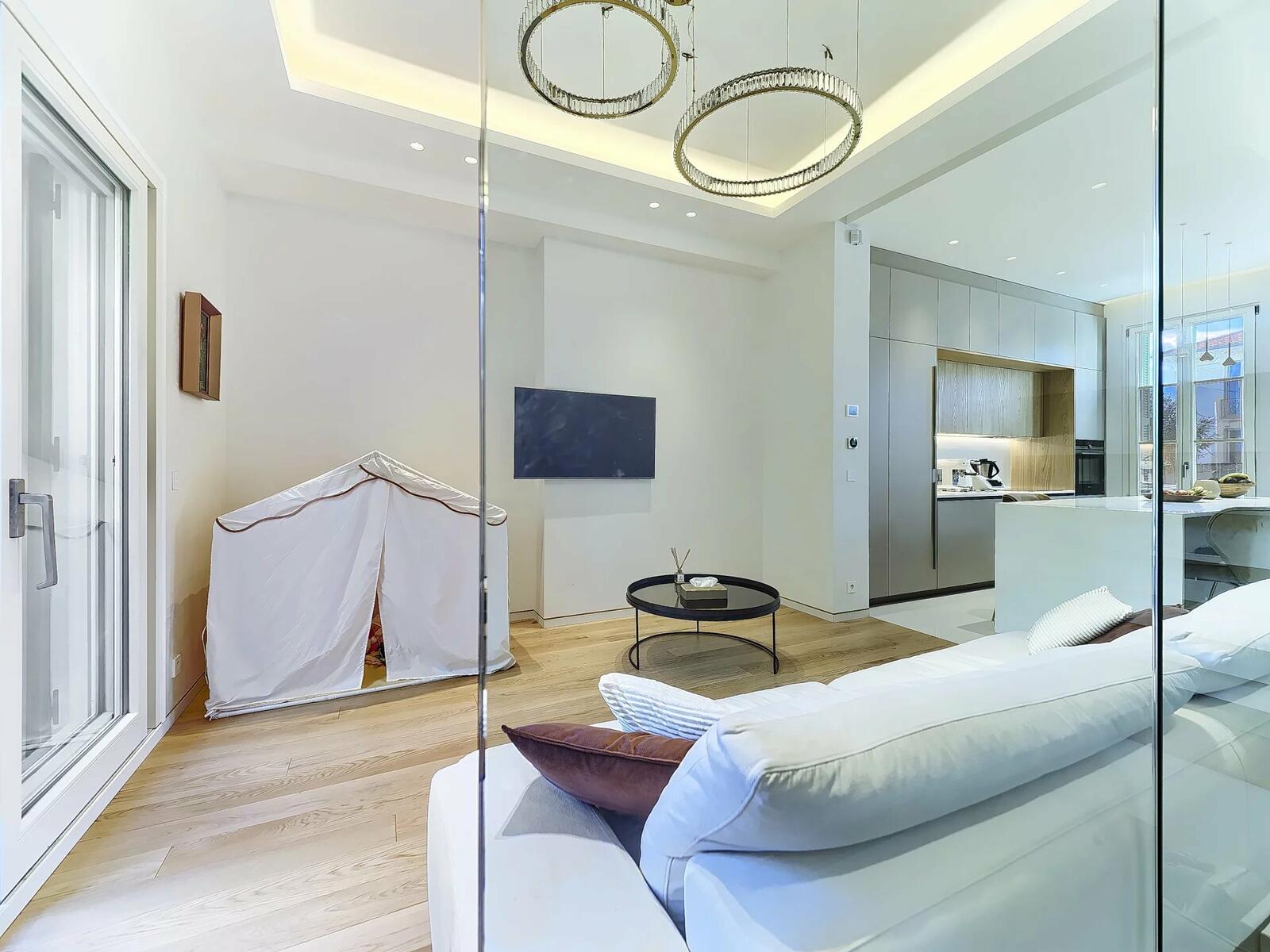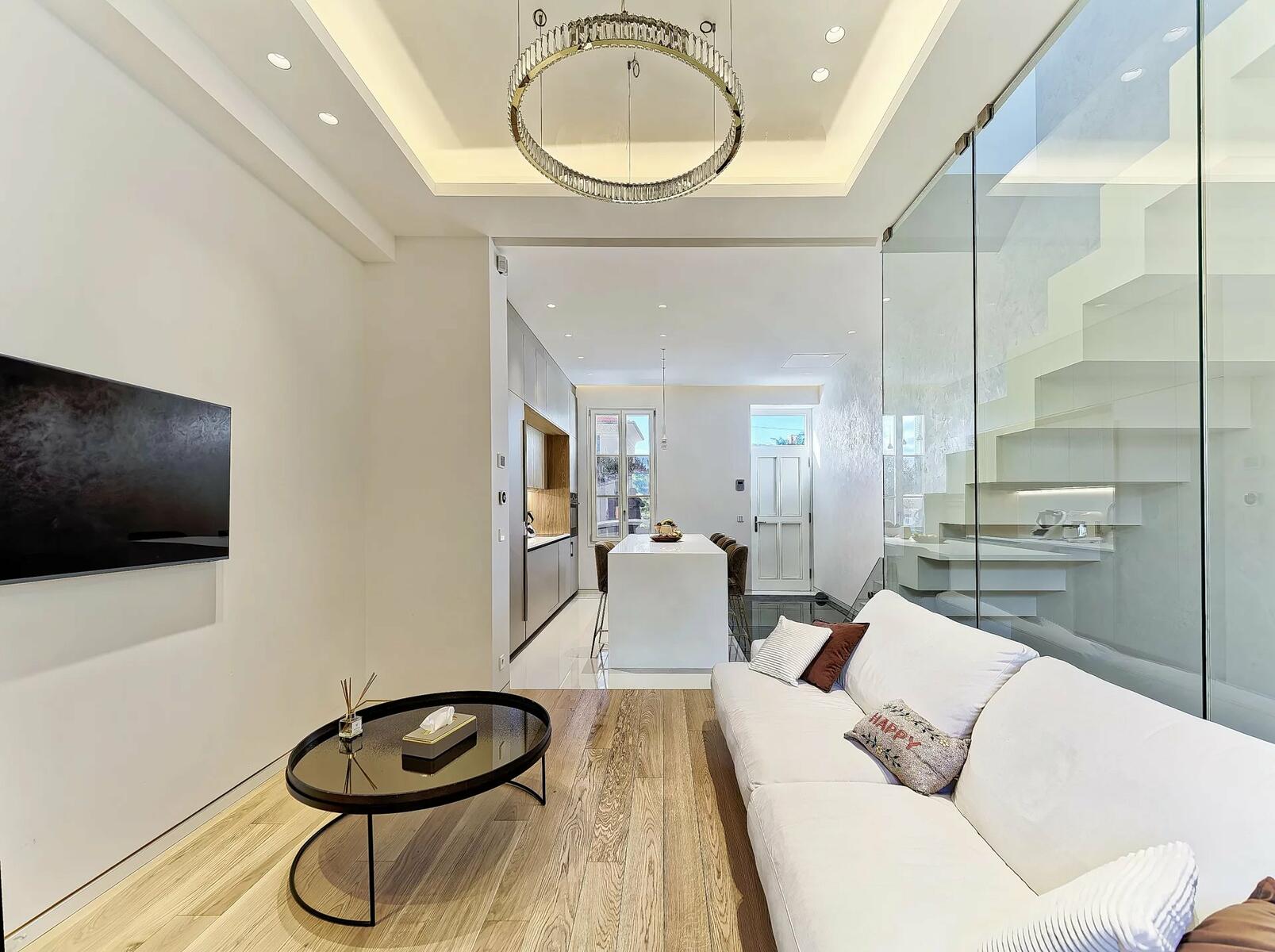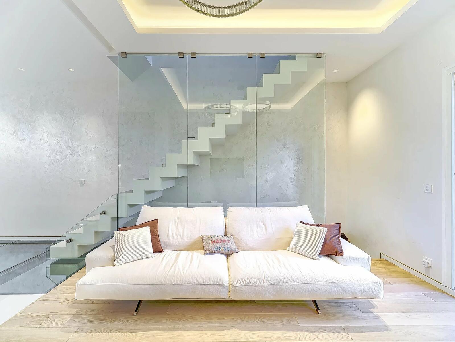 This unique townhouse in Saint-Jean-Cap-Ferrat offers 125 m2 of sophisticated living space on 4 levels. The entrance opens onto a vast living room with open kitchen and access to the terrace. The lower level features a multi-purpose room that can be used as a maid's room, sports or games room, with sauna, shower room and WC. The upper floors feature a master bedroom with bathroom and WC, dressing room and balcony, and another bedroom with bathroom and WC.