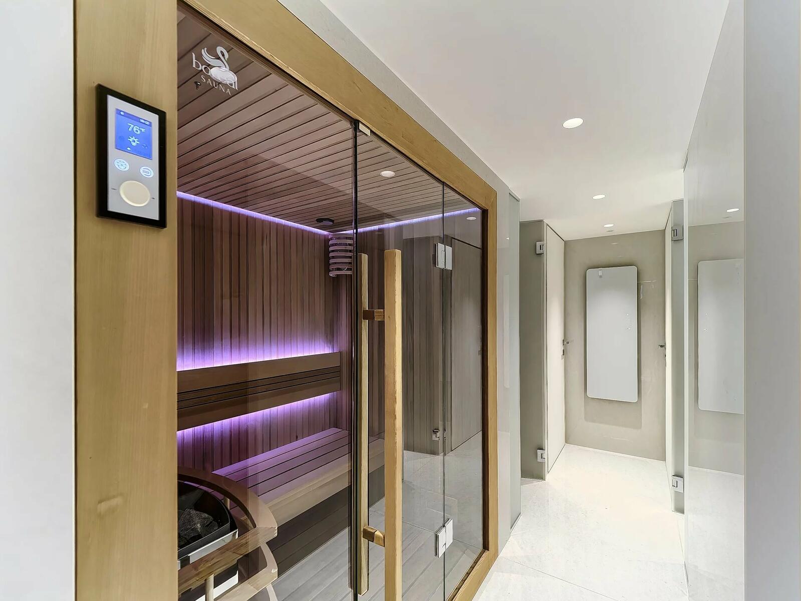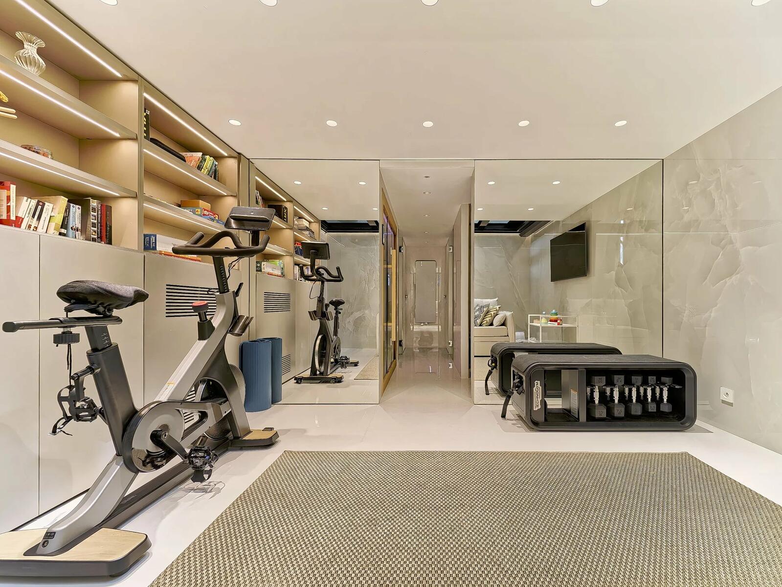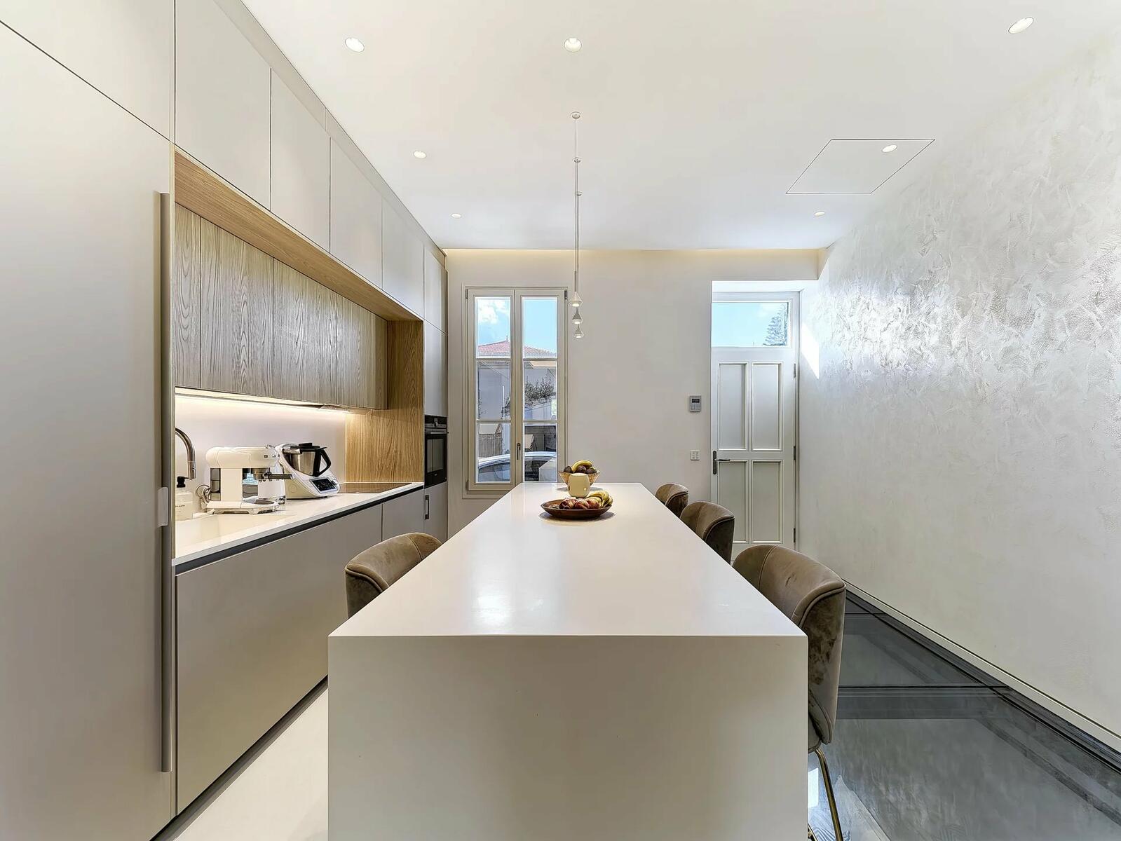 This unique townhouse in Saint-Jean-Cap-Ferrat offers 125 m2 of sophisticated living space on 4 levels. The entrance opens onto a vast living room with open kitchen and access to the terrace. The lower level features a multi-purpose room that can be used as a maid's room, sports or games room, with sauna, shower room and WC. The upper floors feature a master bedroom with bathroom and WC, dressing room and balcony, and another bedroom with bathroom and WC.