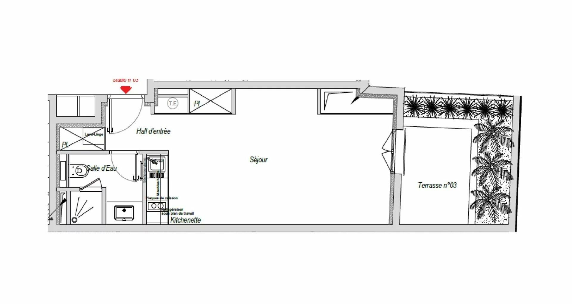 This good-sized studio offers a pleasant terrace equipped with planters, on the quietest side of the residence. It has been luxuriously renovated, with a modern, fully-equipped kitchen, plenty of cupboard space and a contemporary bathroom with walk-in shower.