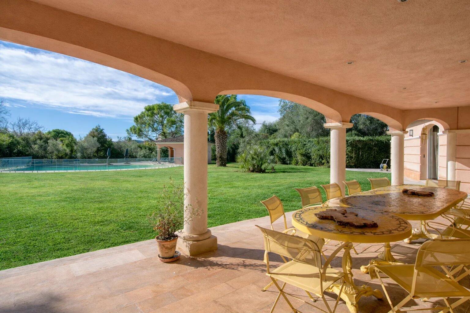 Located in one of Mougins’ most exclusive and residential areas, sheltered from view and close to the village, international schools and golf courses, this elegant neo-Provençal villa enjoys a privileged setting just 20 minutes from Nice International Airport.