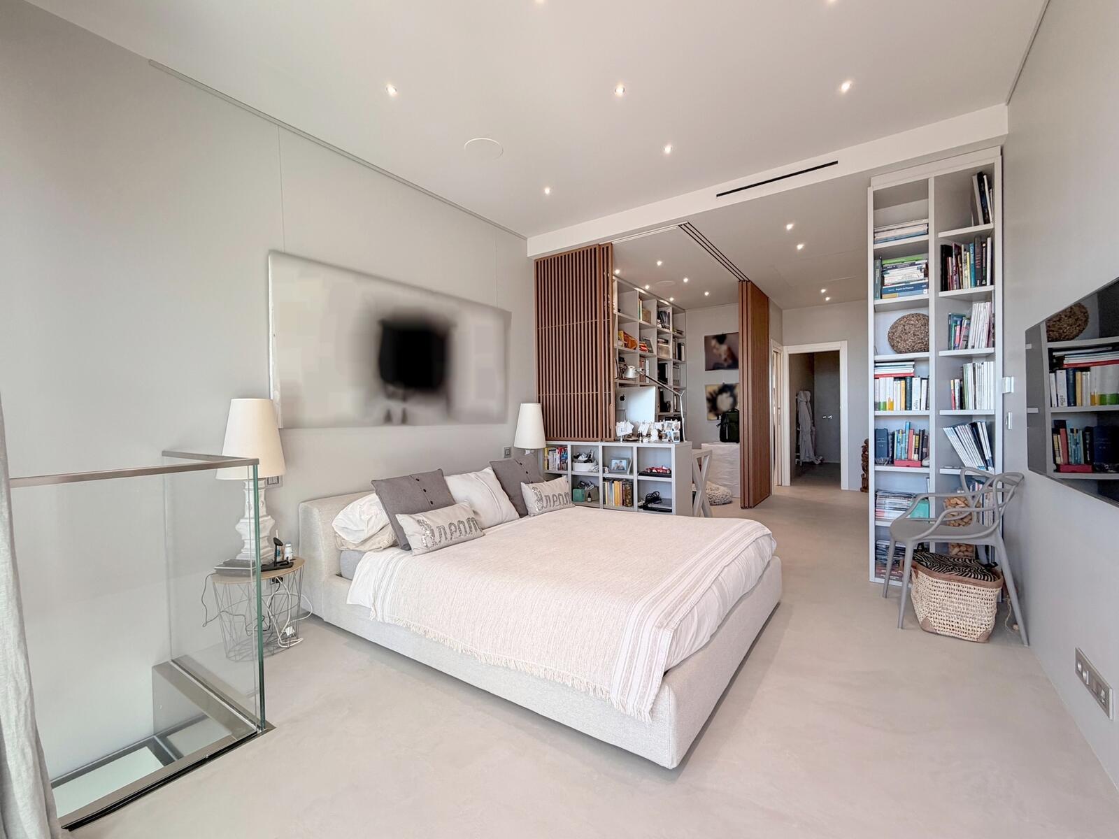 Stairs leading to the upper level leading to the master suite with balcony and sea view, dressing room, office space and en-suite shower room,