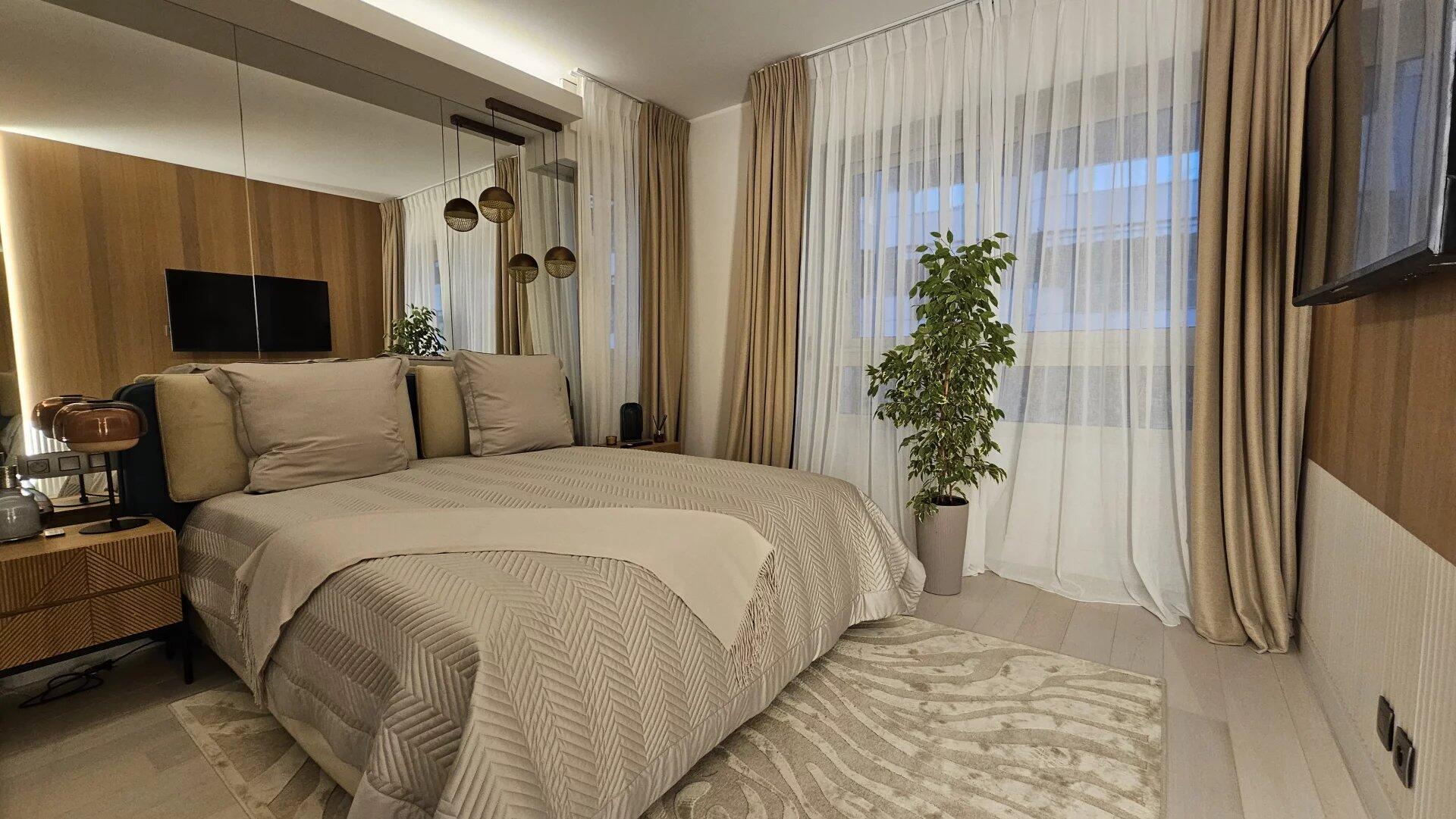 The three bedrooms are tastefully appointed, offering both space and privacy. The master bedroom has a large dressing room. The kitchen, meanwhile, combines practicality and contemporary style, ideal for food lovers.