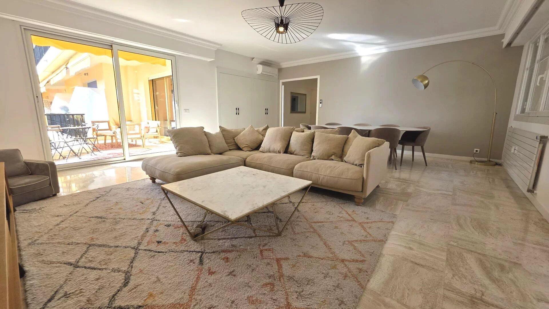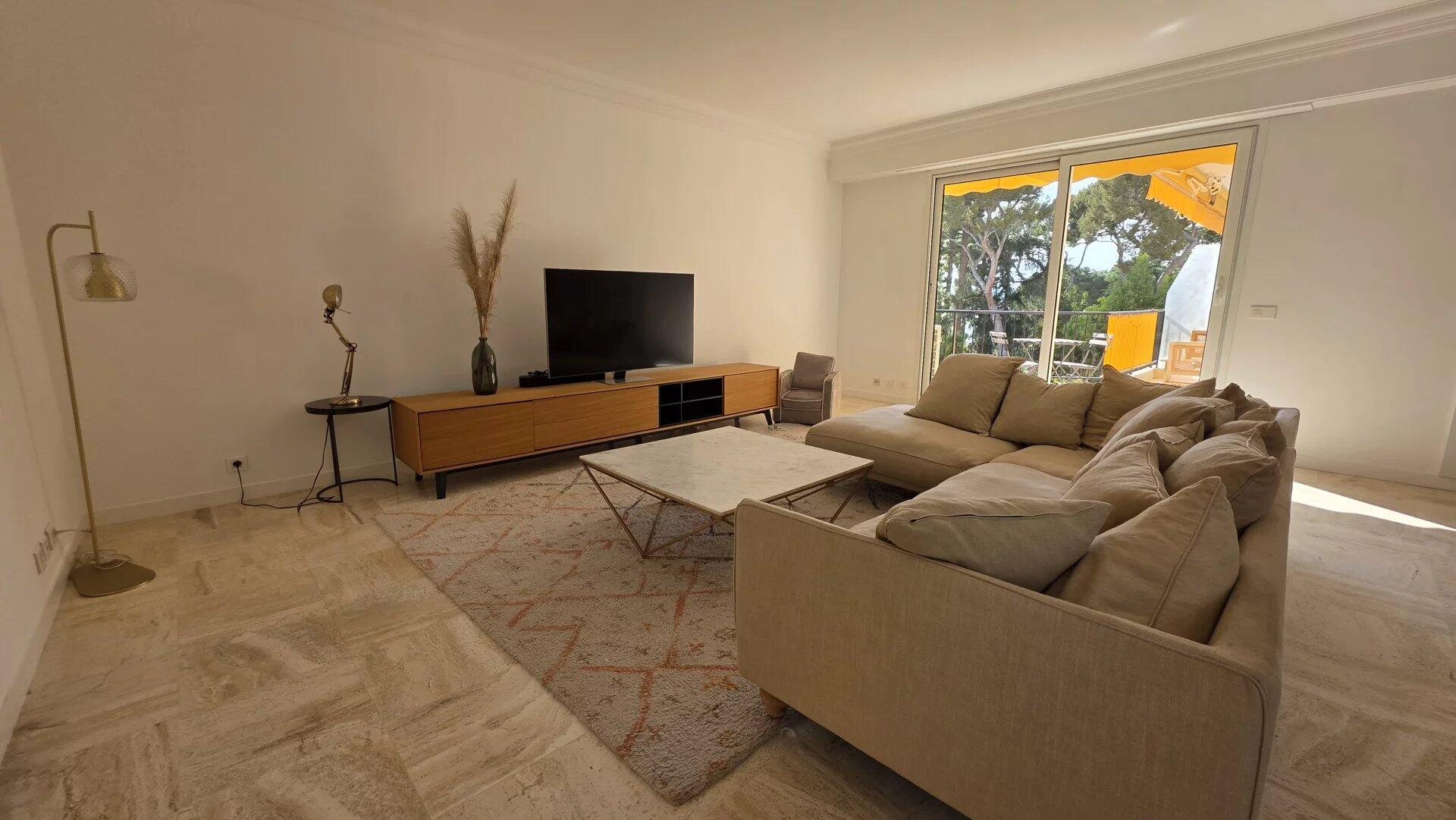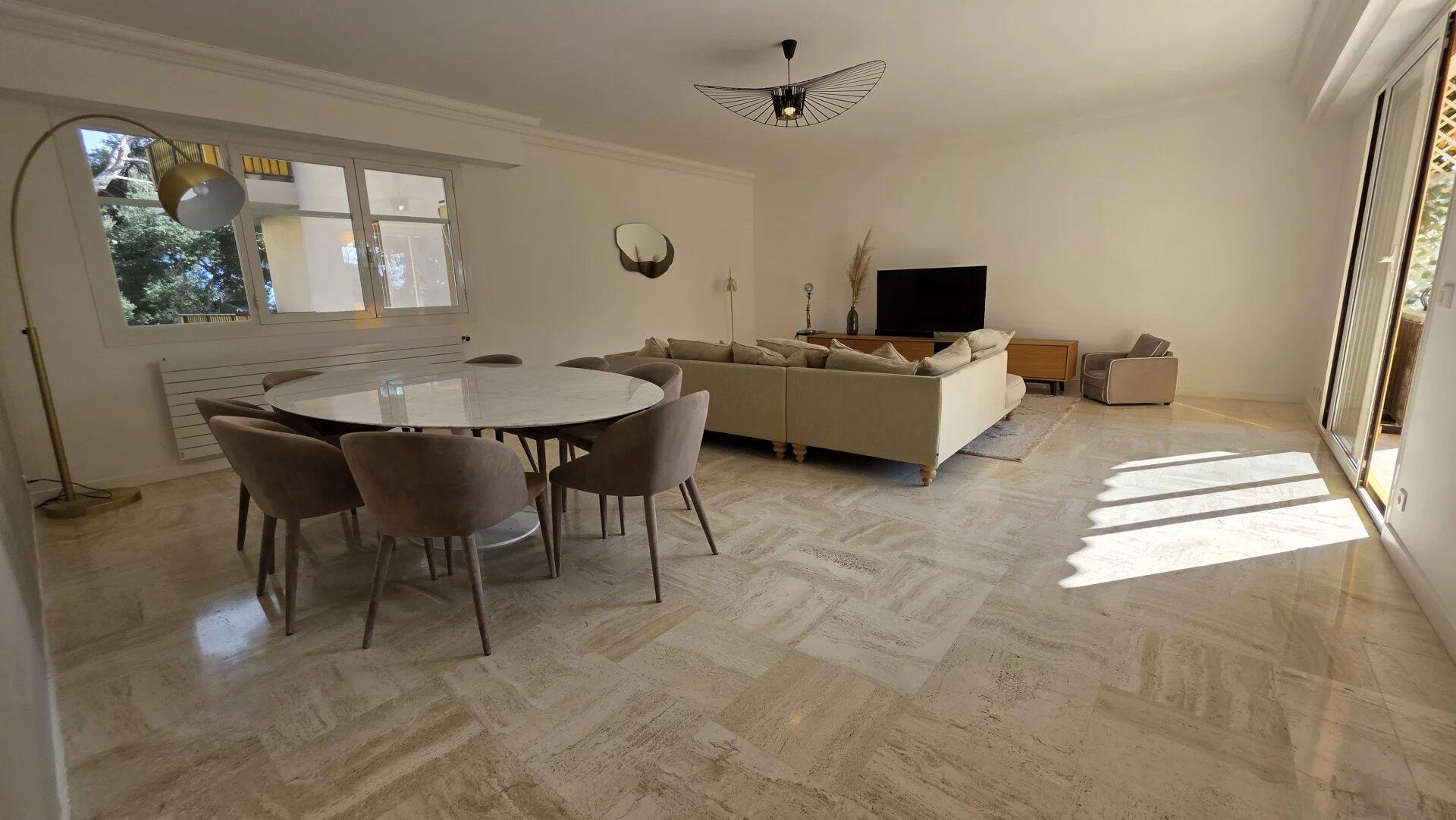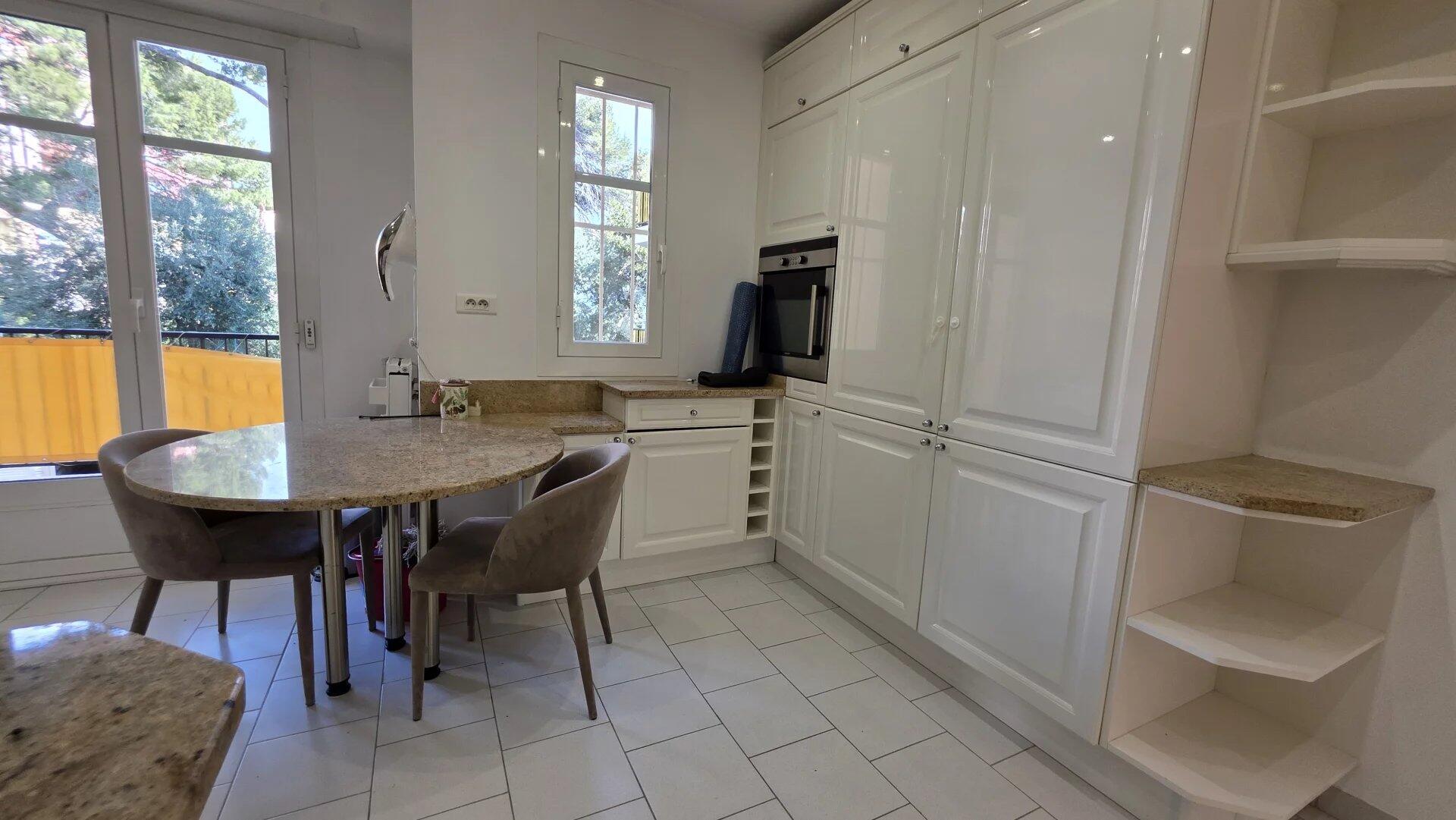 In a luxury residence close to the beach, with swimming pool and janitor, superb 4-room apartment with sea view. It comprises an elegant entrance gallery, three bedrooms, two bathrooms, a separate kitchen and two terraces. The apartment is air-conditioned and in perfect condition. The setting is very pleasant and peaceful. The building is located 5 minutes from the center and its shops.