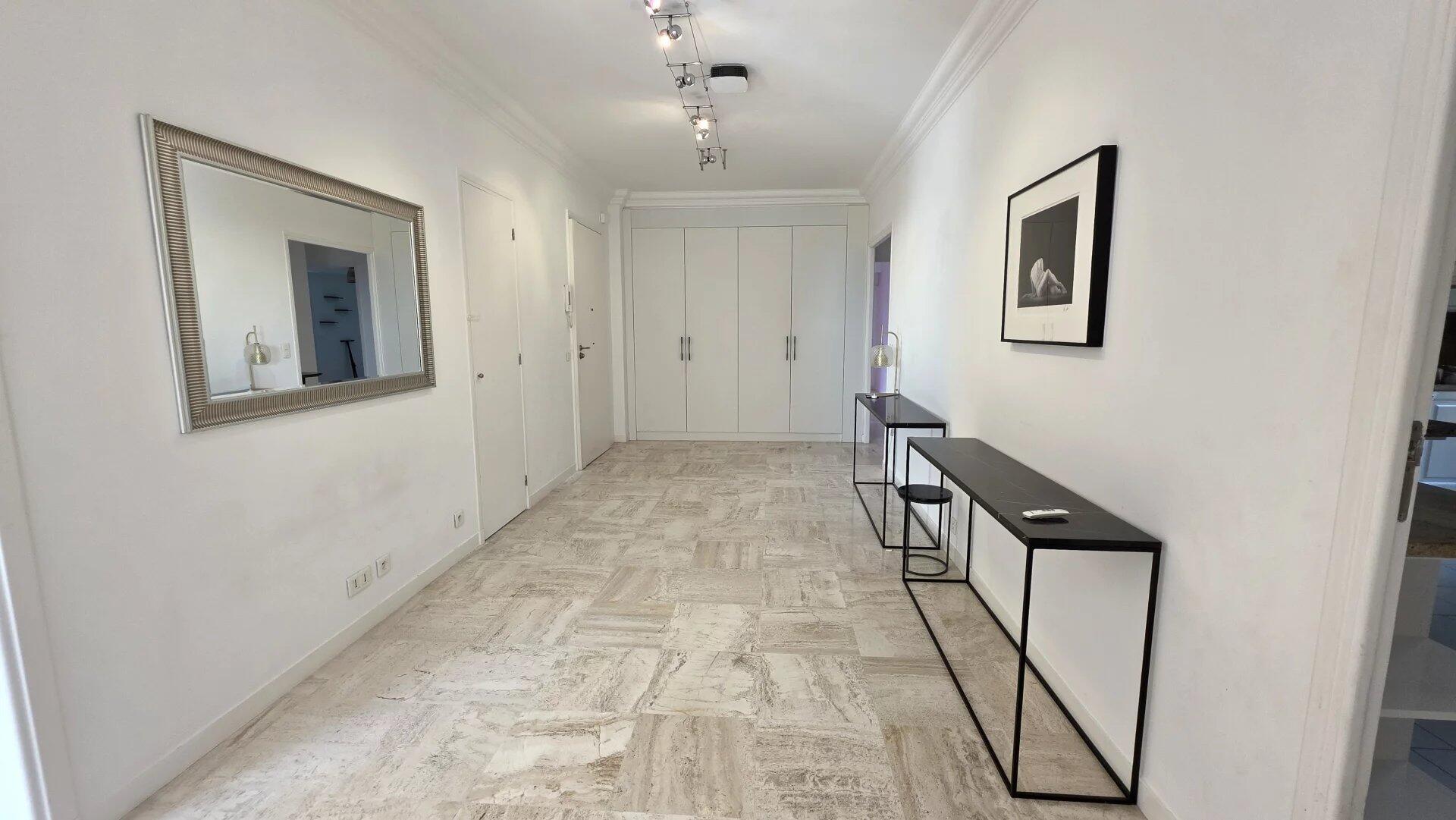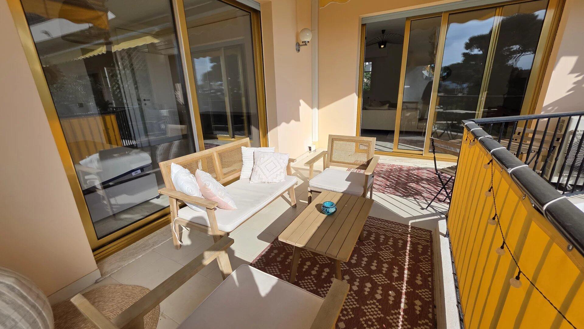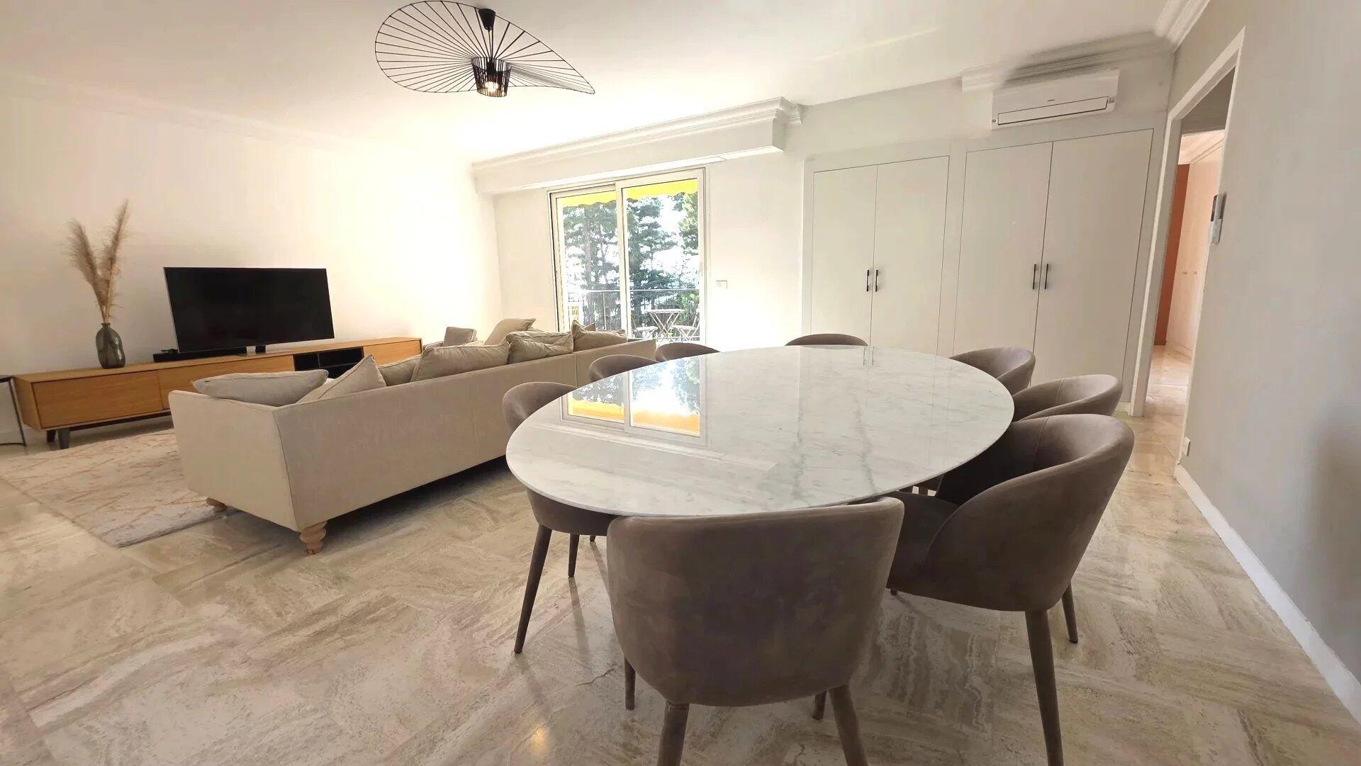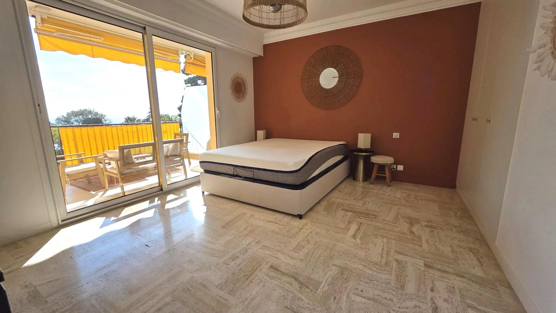 In a luxury residence close to the beach, with swimming pool and janitor, superb 4-room apartment with sea view. It comprises an elegant entrance gallery, three bedrooms, two bathrooms, a separate kitchen and two terraces. The apartment is air-conditioned and in perfect condition. The setting is very pleasant and peaceful. The building is located 5 minutes from the center and its shops.