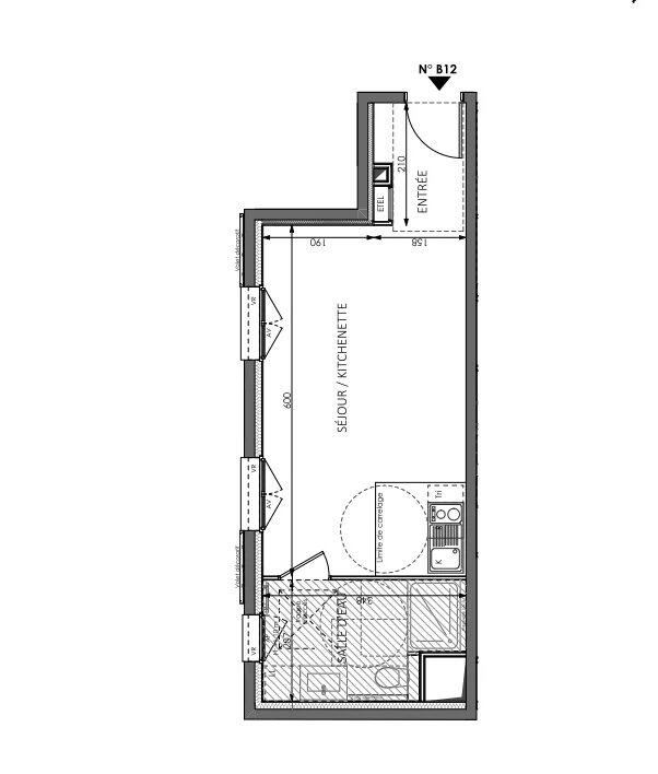 This studio consists of an entrance, a living room with open kitchen and a shower room.