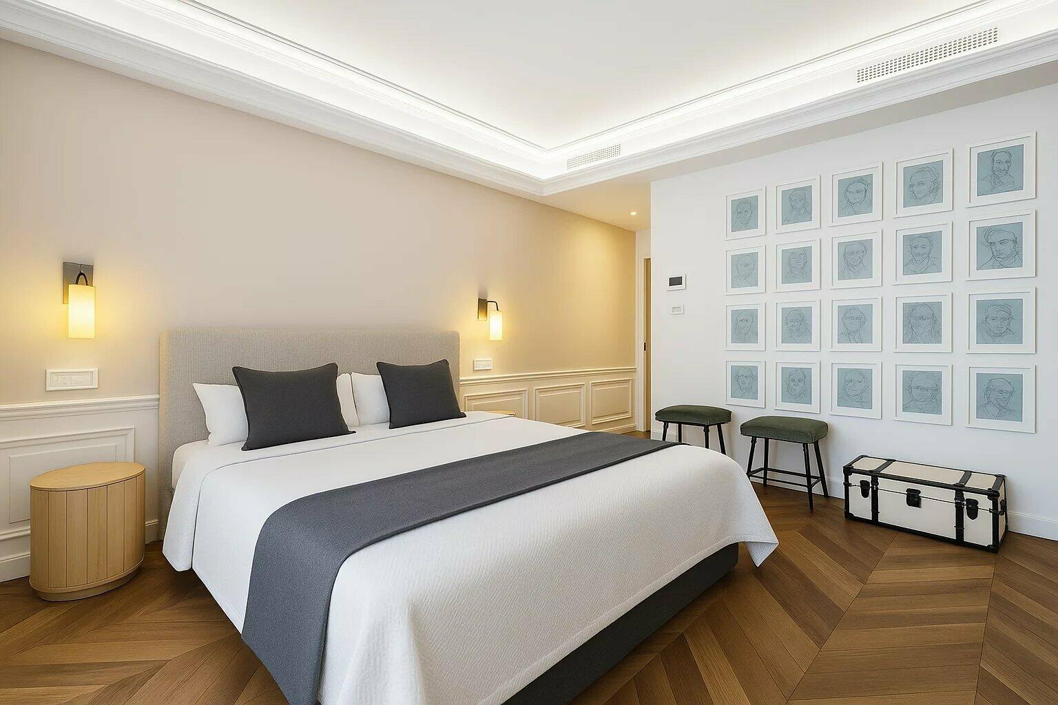 A special highlight are the elaborately designed French wall decorations, reminiscent of the elegance of classic Parisian interiors. Refined with noble materials and recently finished to the highest standards, they lend the entire property a unique character and timeless sophistication.