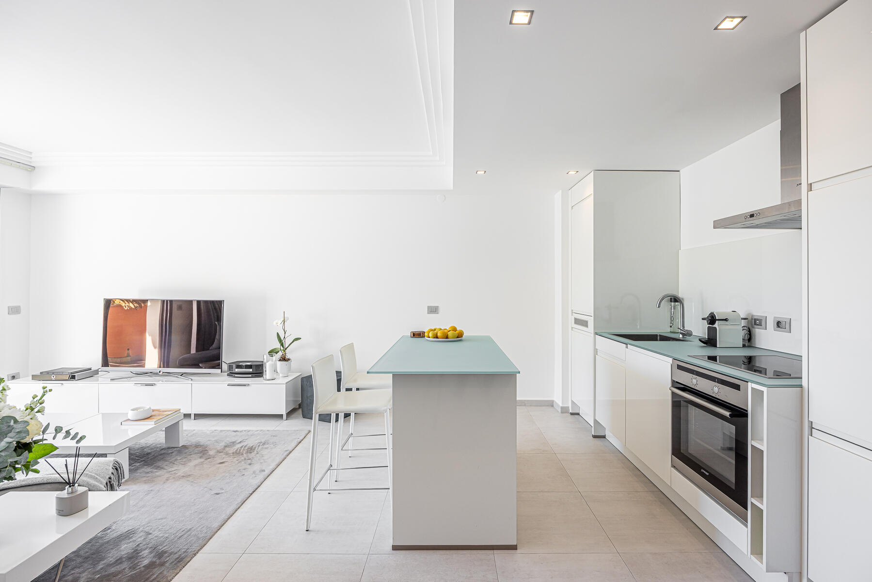 Flooded with natural light, the apartment enjoys a perfectly optimised layout: the living room, kitchen and both bedrooms all open directly onto the terrace, creating a seamless indoor-outdoor lifestyle under the Mediterranean sky.