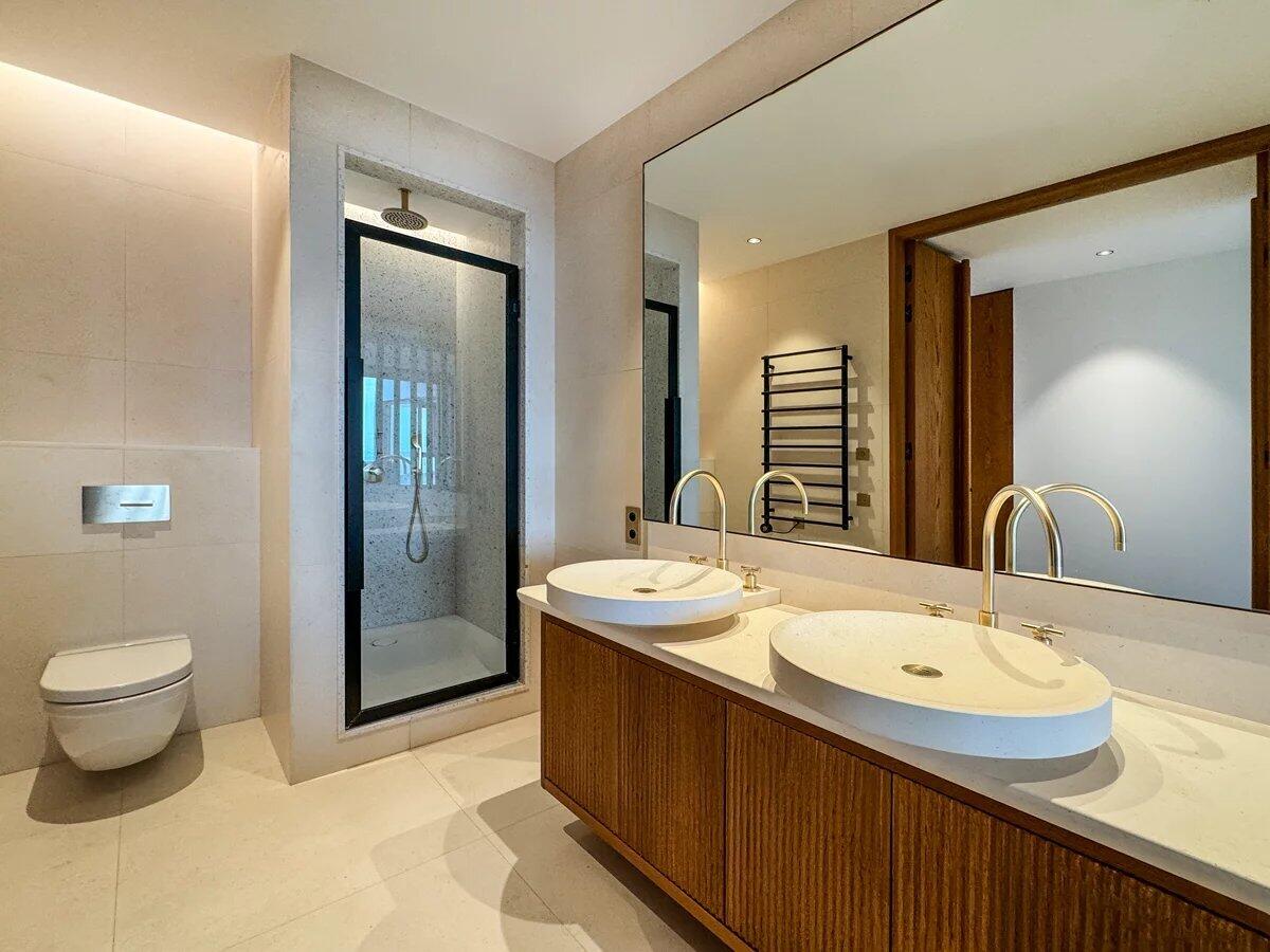 This magnificent two-bedroom apartment boasts a breathtaking sea view. Thanks to its south-west orientation, the apartment benefits from optimum sunlight and impresses with its high-quality design. The apartment features an elegant living room and a fully equipped kitchen. The living room opens onto a spacious terrace, where a large dining table invites convivial evenings. An additional sitting area creates an atmosphere of calm and relaxation for you and your guests. The master bedroom impresses with its size, natural light and walk-in wardrobe that offers plenty of storage space. The en-suite bathroom with underfloor heating features stone tiles, a custom double sink, bathtub and shower. A second bedroom with shower room also offers quality materials and modern design.