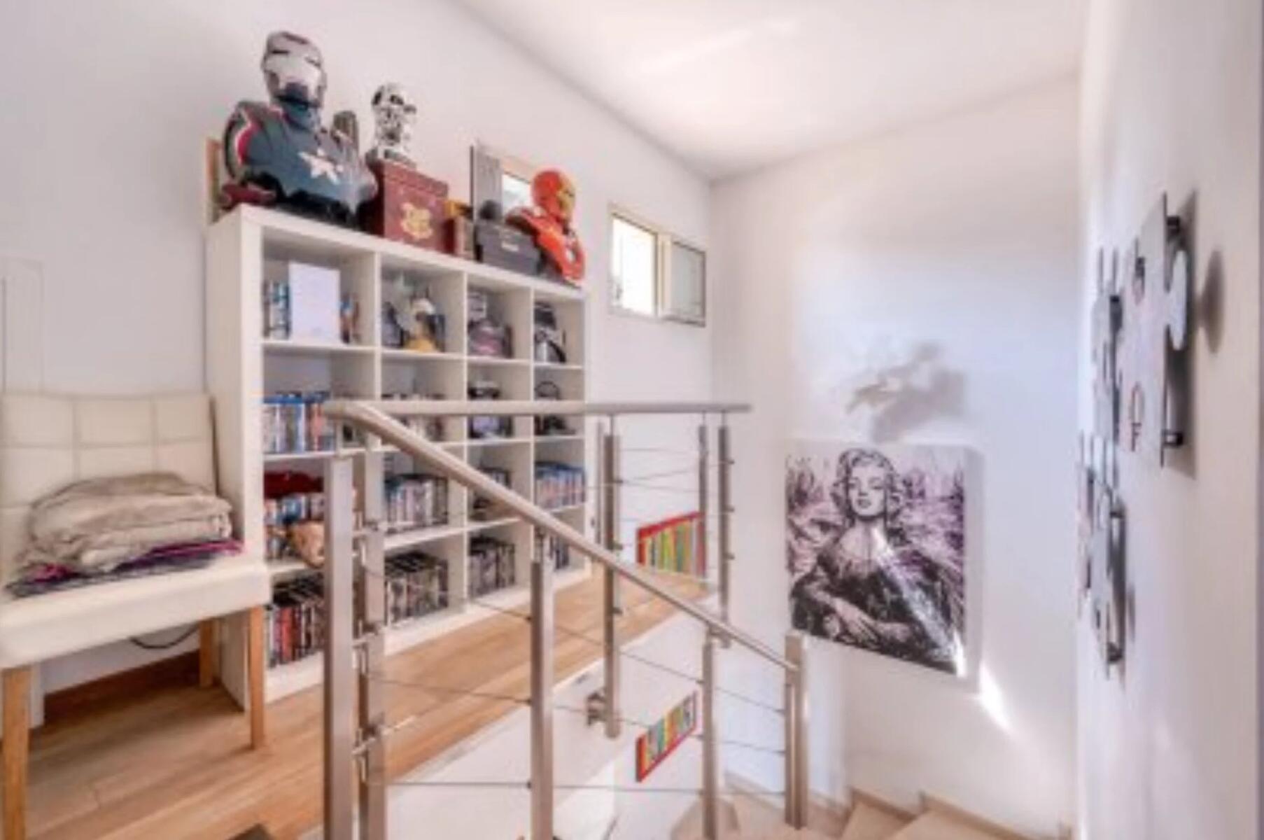 It also includes an office and a fitness room, combining comfort, functionality, and quality of life. The living room is enhanced by a functional fireplace, creating a warm and inviting atmosphere.