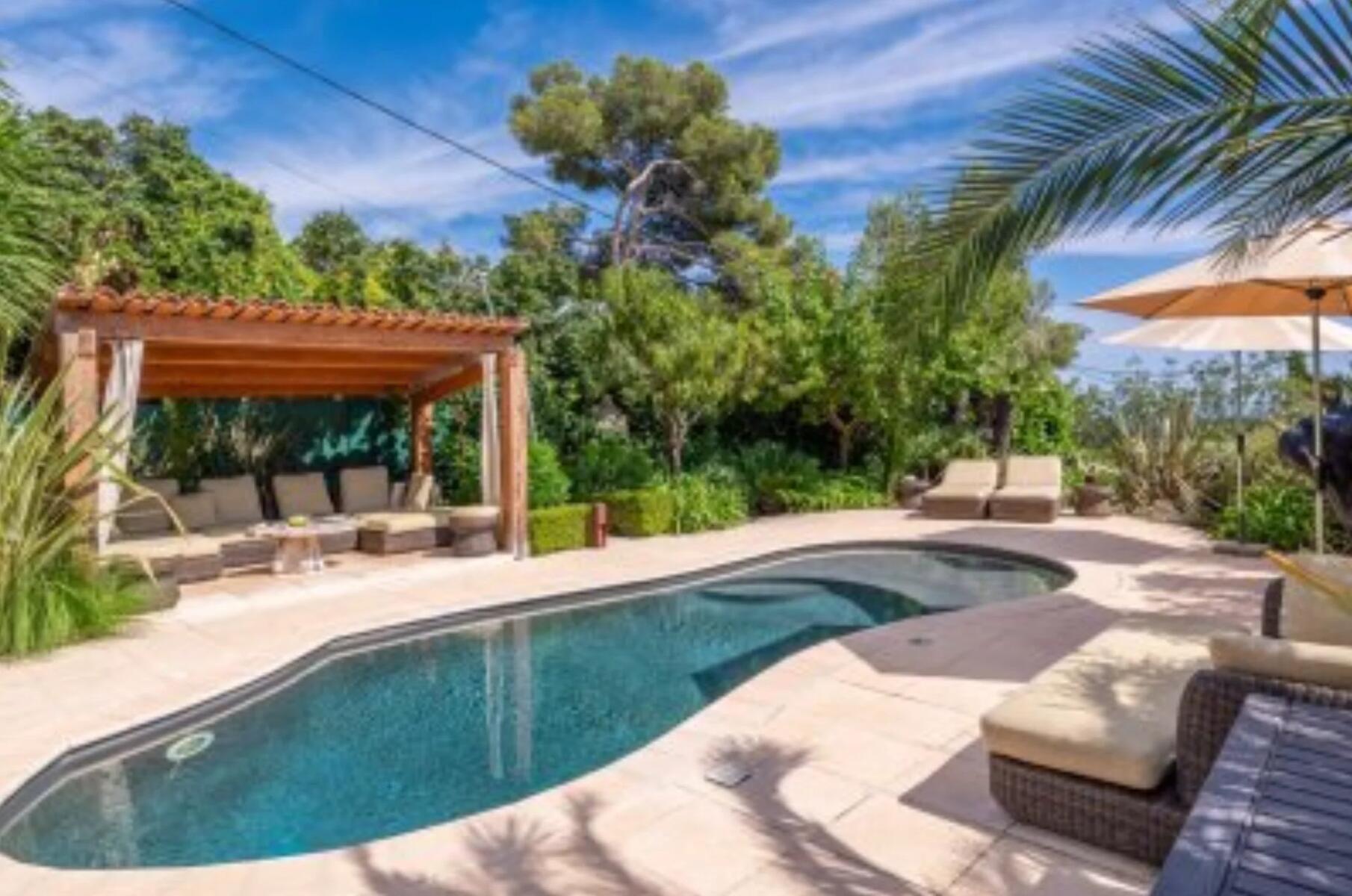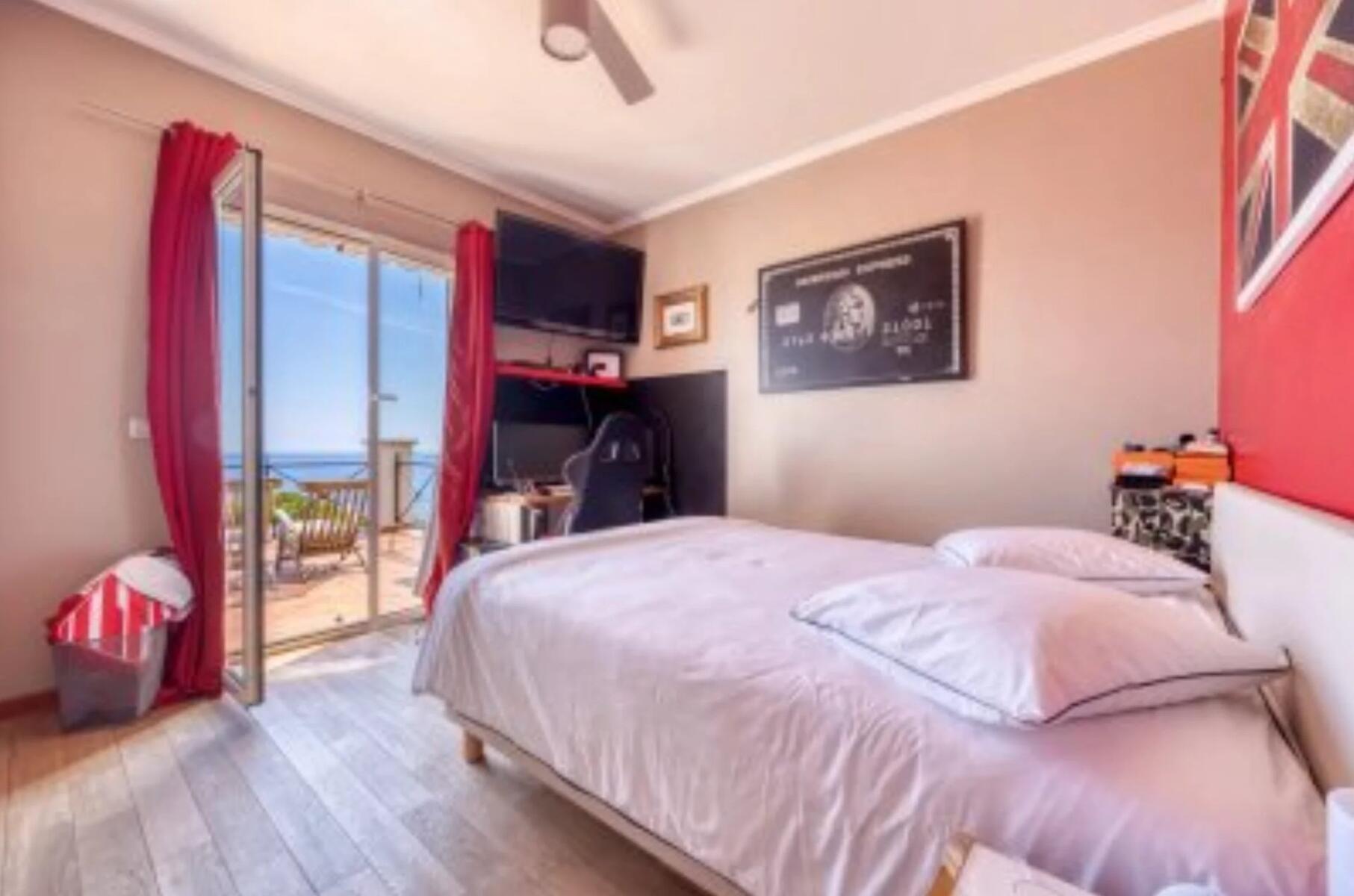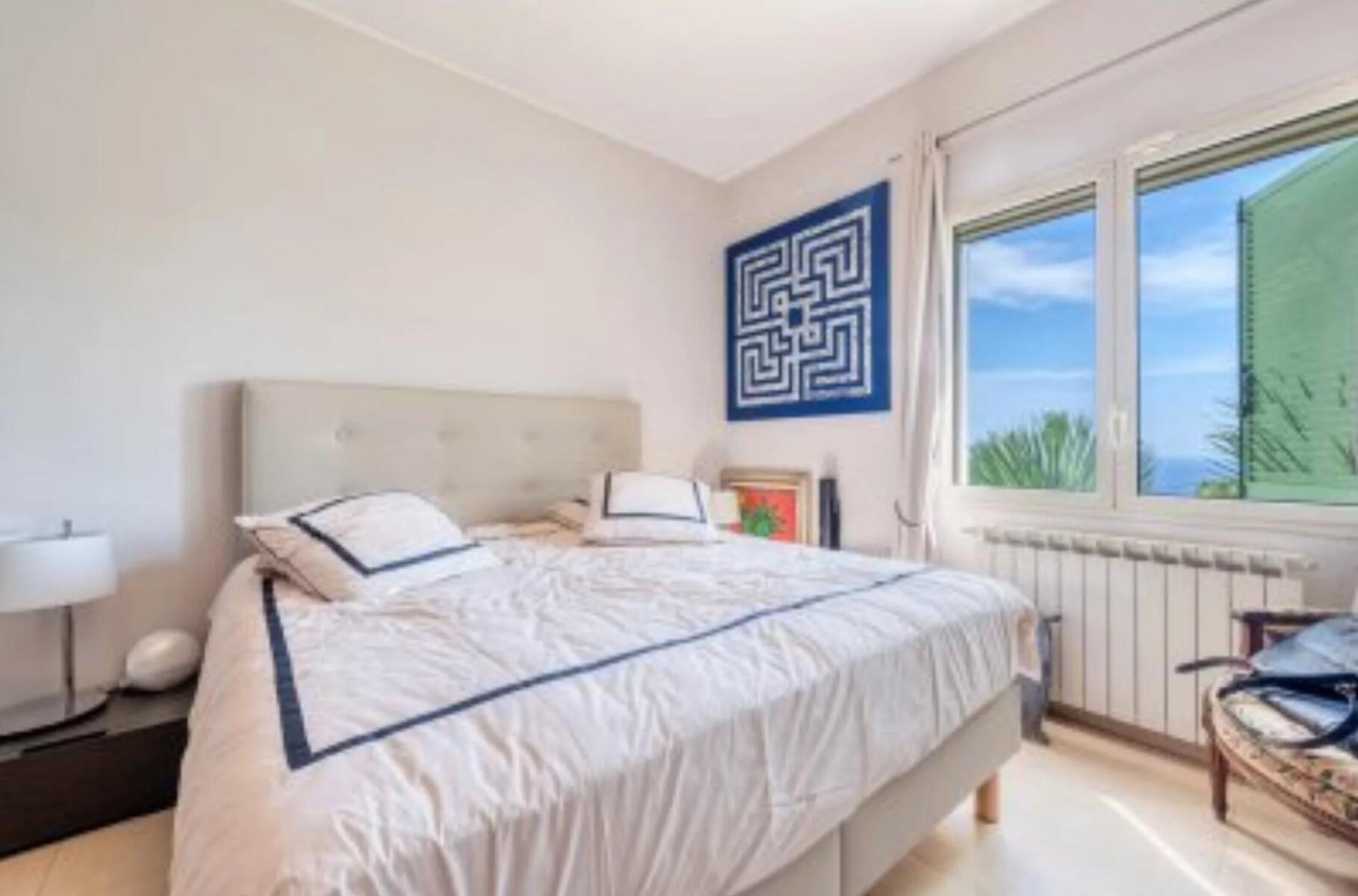 The property benefits from breathtaking panoramic views over the sea, mountains, pool, and garden, providing a truly unique living environment. The beautifully maintained garden, planted with fruit trees, features a swimming pool and a barbecue area, perfect for enjoying sunny days.