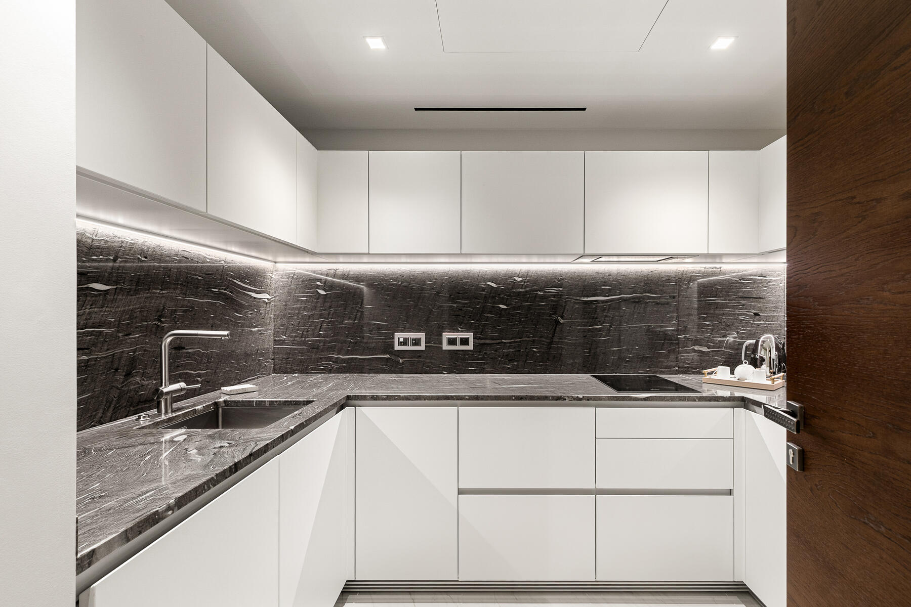 The large, fully equipped BULTHAUP kitchen is separate ; a rare layout for a studio.