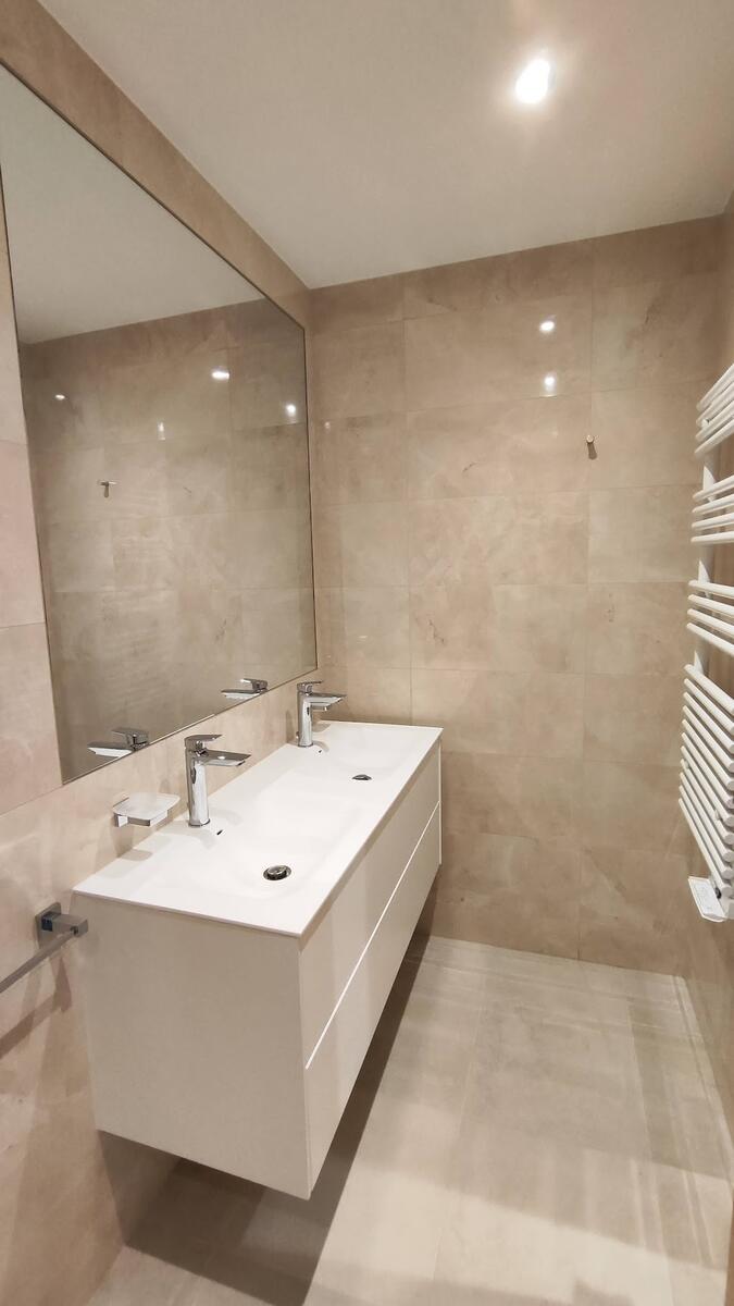 An entrance hall, hallway, spacious living room, fully equipped kitchen, bedroom with closet, shower room, separate toilet, terrace, air conditioning, double glazing.