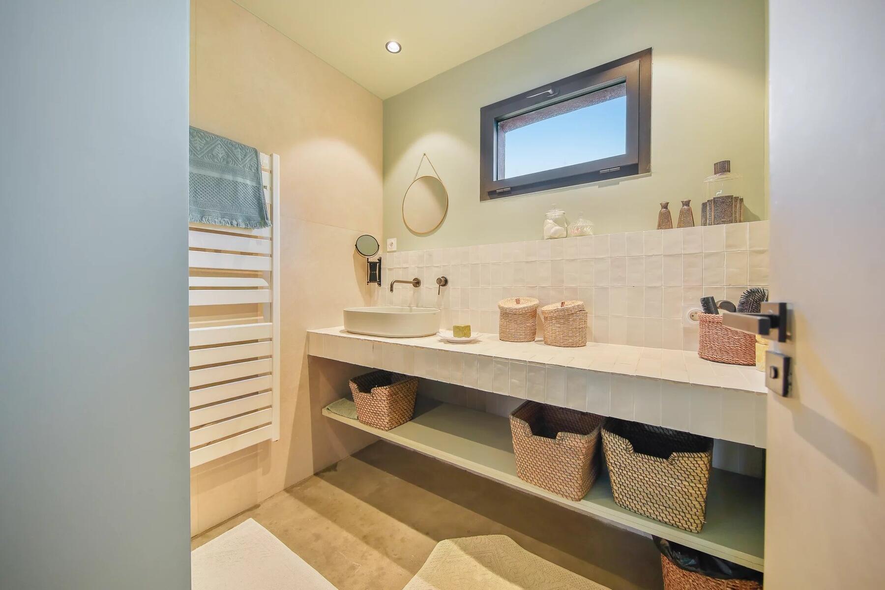 On the garden level, a separate apartment of around 100 sqm with two bedrooms, connected to the main house, offers the perfect space for guests or independent living.