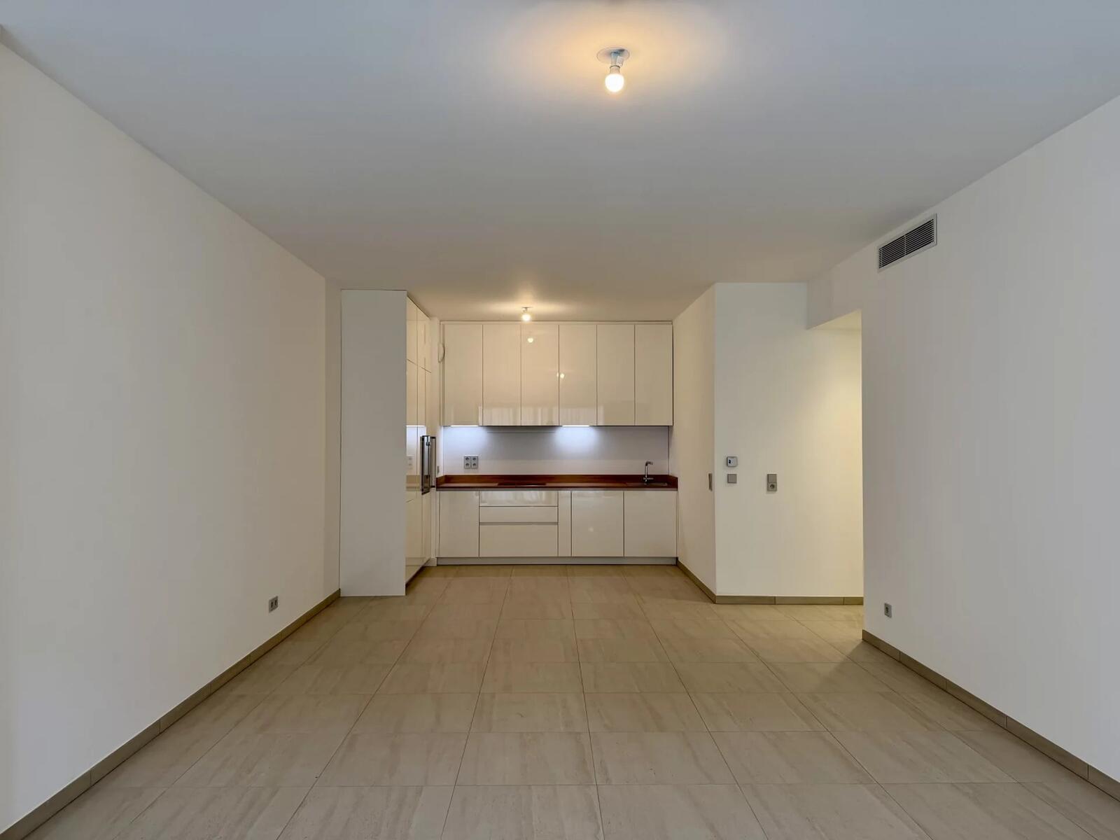The current layout allows for an easy conversion into a two-bedroom apartment, either by creating a bedroom at the front part of the living room opening onto the balcony, or by creating an internal (windowless) bedroom in place of the current kitchen.