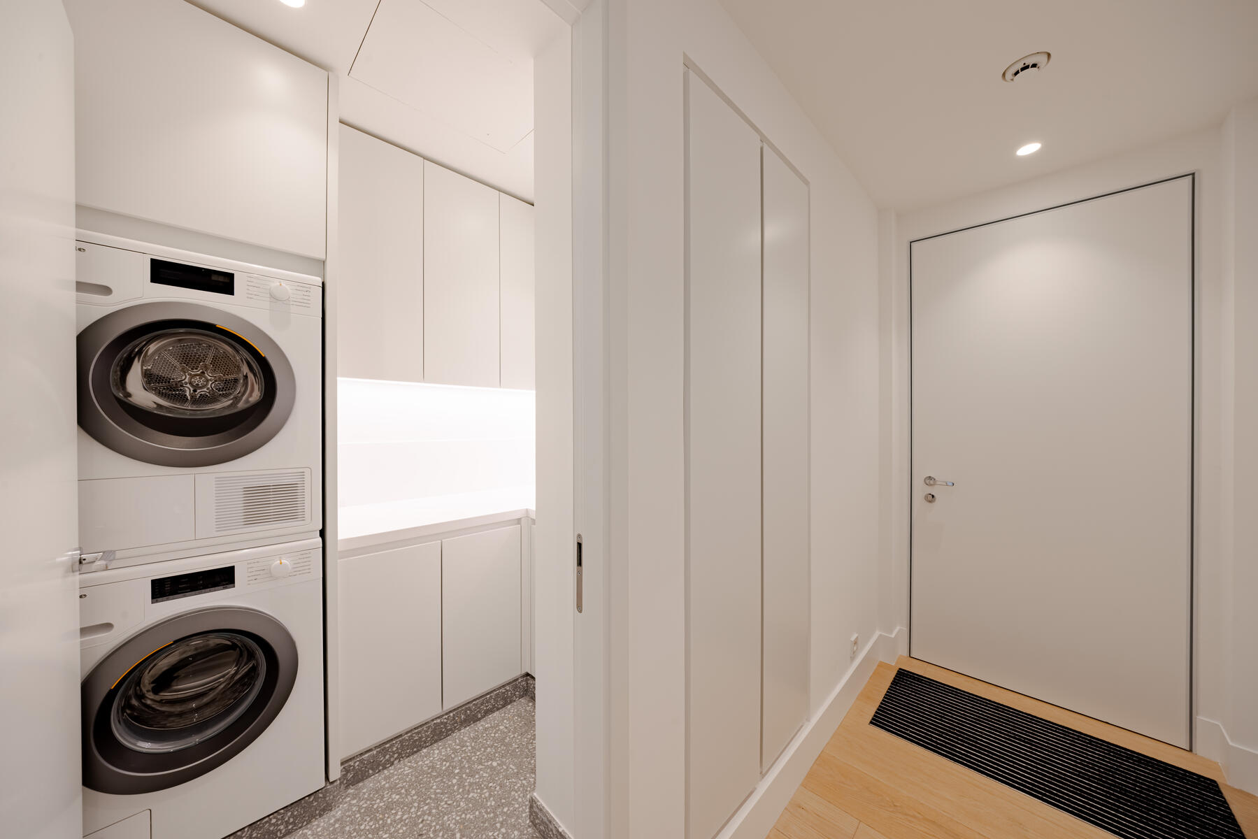The apartment also includes an independent kitchen, a laundry room, guest toilets and toilets for the staff.