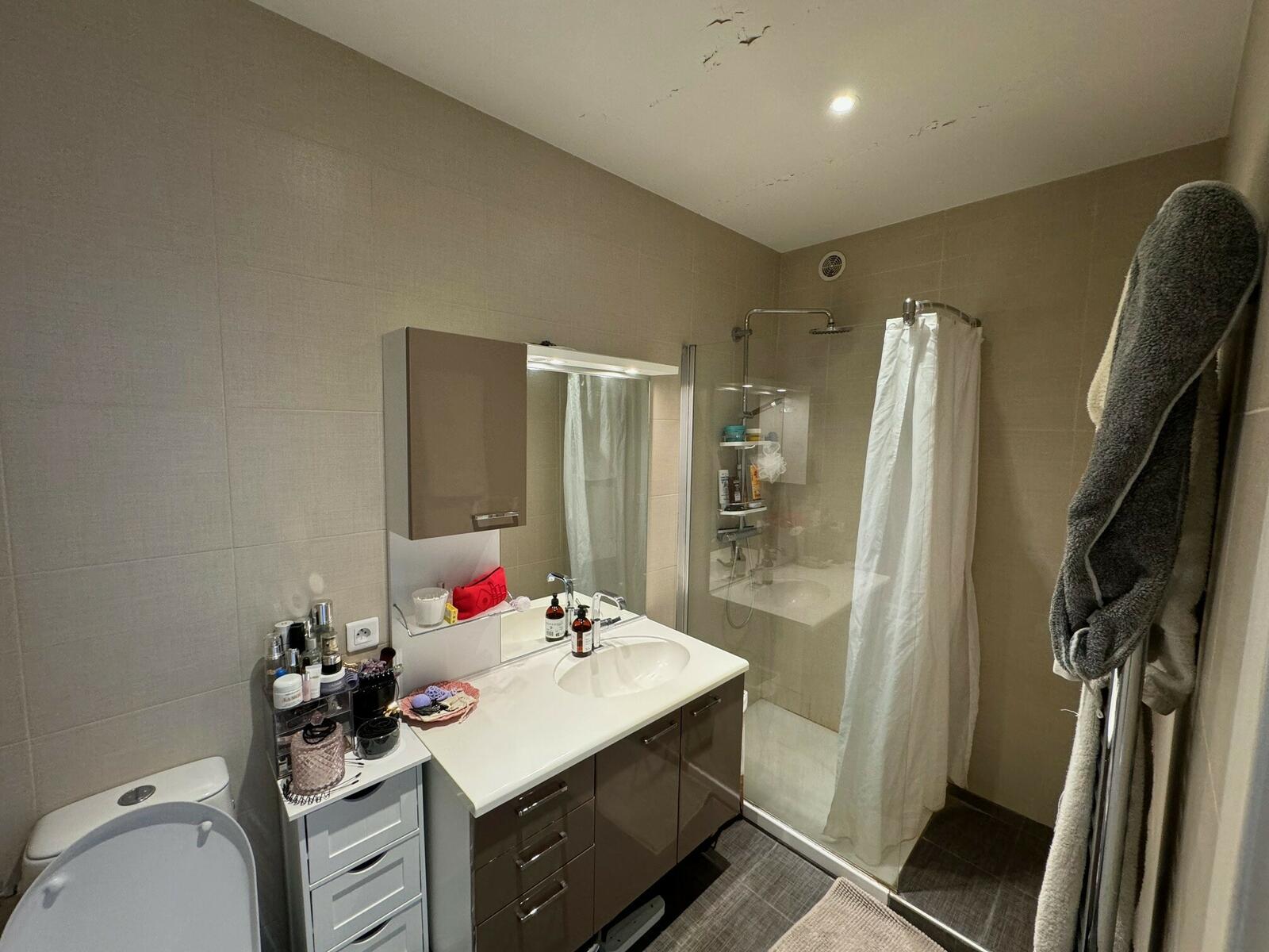A bathroom and a large equipped kitchen complete this air-conditioned apartment.